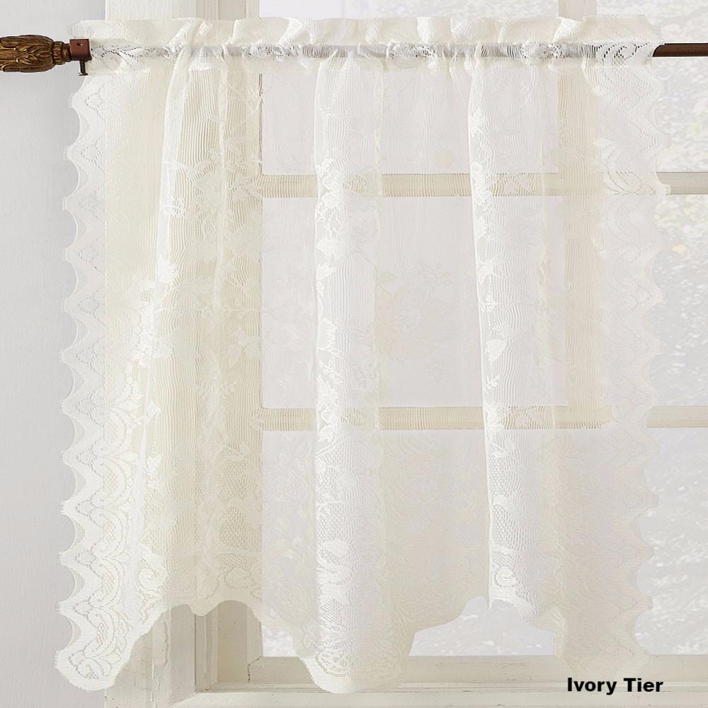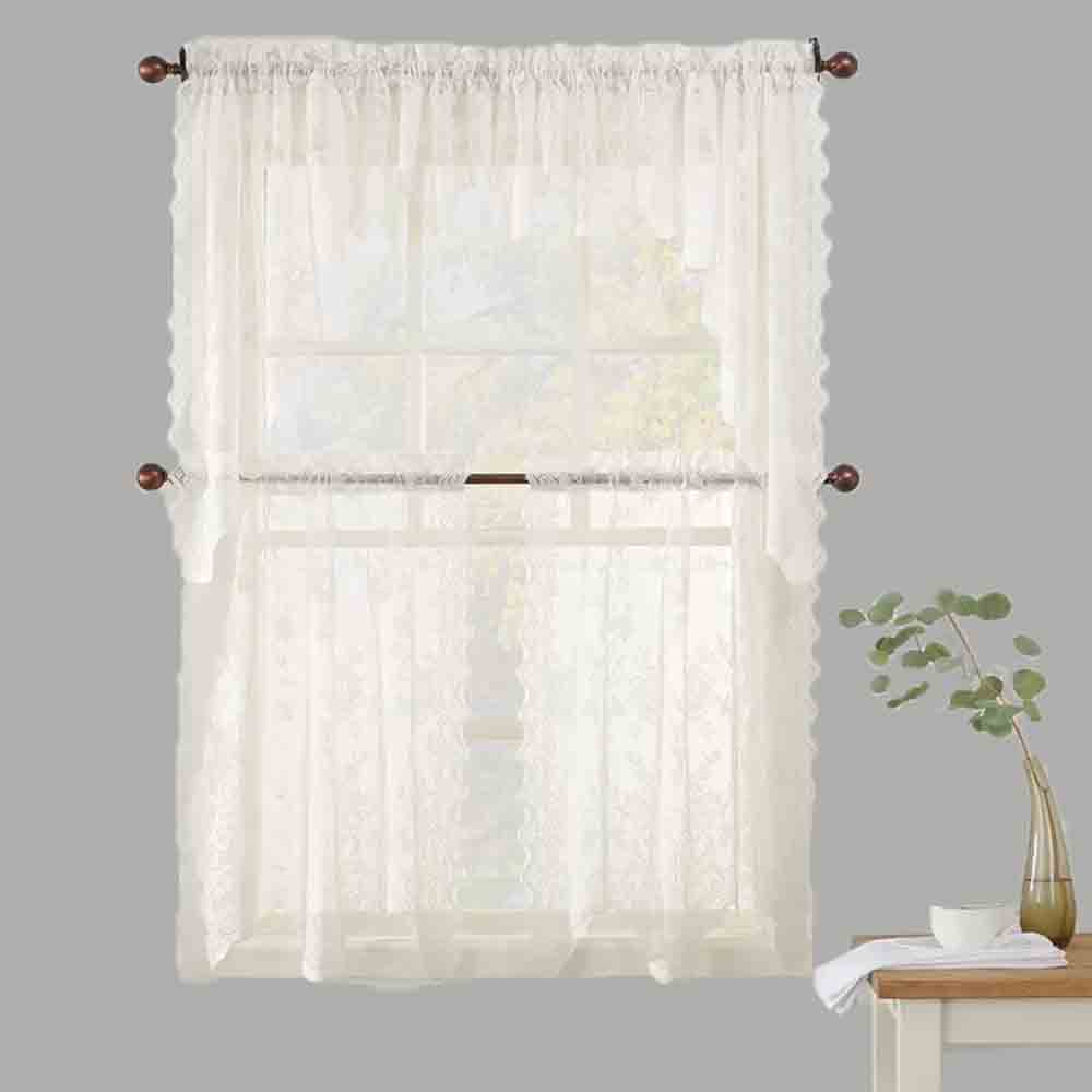 Give your kitchen a new look with Alison Jacquard Sheer Lace Kitchen Curtain. This elegant jacquard sheer lace curtain features an attractive scalloped bottom and edge for a delicate look. This beautiful lace kitchen curtain will not only will it be eye-pleasing but it will also, make any kitchen look bright and cheery. Available in 2 different colors, these curtains will surely make any window look and feel elegant. Also, available in a Lace Panel and Balloon Shade.