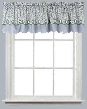 The Ashley Floral Scalloped Valance by Saturday Knight has a beautiful mini floral print with blue flowers. This valance features an exquisite scalloped gingham trim and contrasting teardrop embroidery that will bring a summer country look to any kitchen!