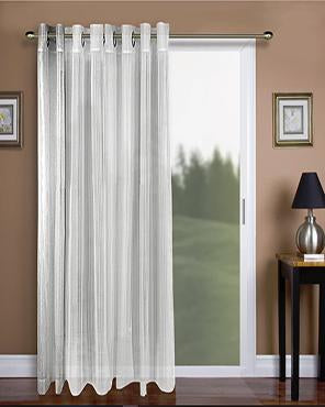 With a delicate woven design, the Atlantic Stripe Semi-Sheer Grommet Top Patio Panel hangs elegantly in front of your Patio door or extra wide windows. It's elegant brushed nickel grommet finish allows the patio panel to easily slide on to a decorative rod with a diameter of up to 1 1/2" with ease. Also include is an attachable wand which can be hung on either the left or right side. This soft, silky curtain is wrinkle resistant and hang beautifully.
