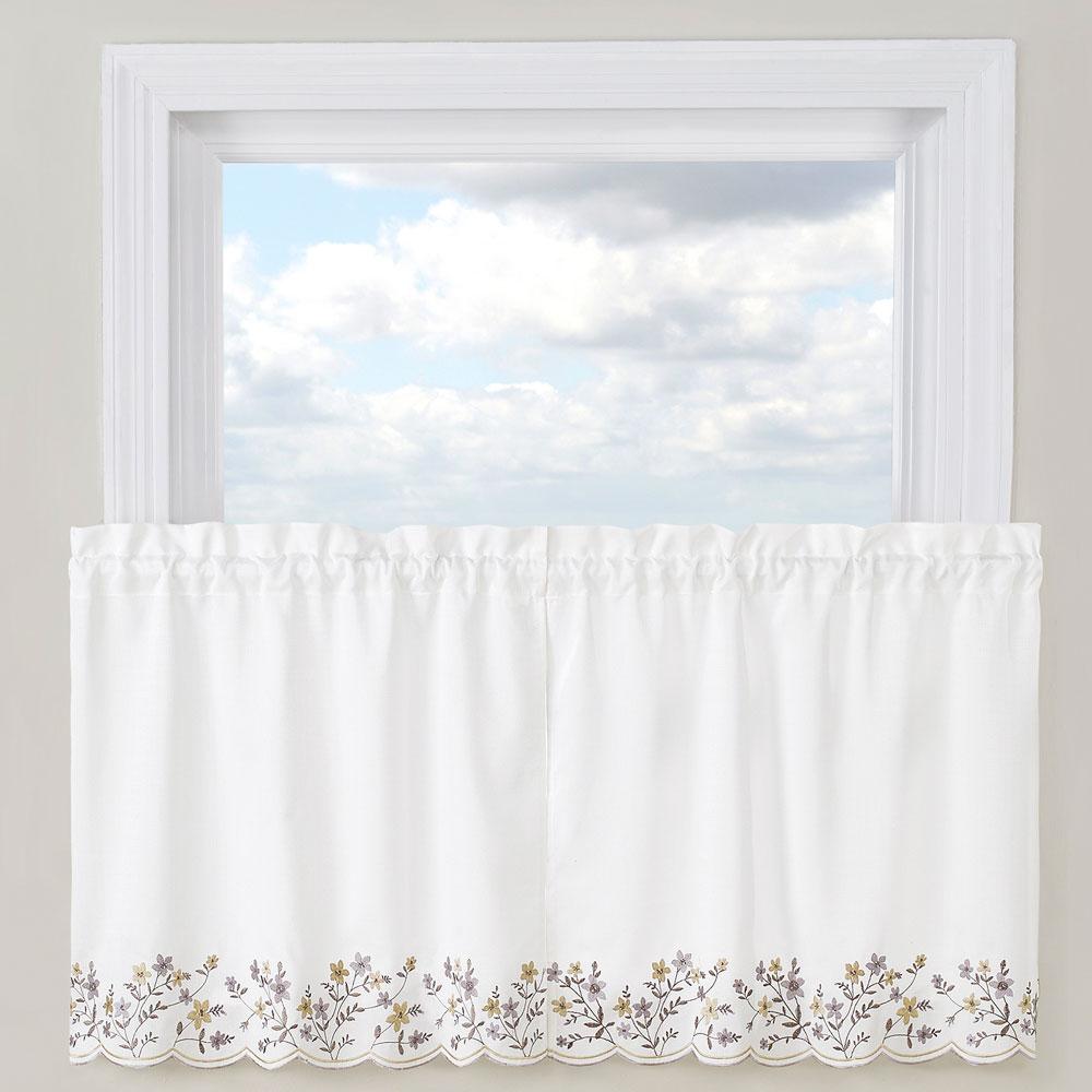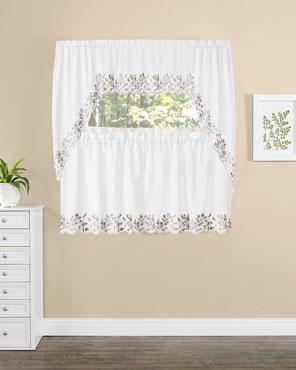Bloom Embroidered Tier of Pair, Valance & Swag with Scalloped Hem