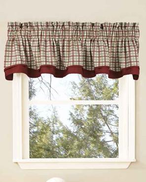 A classic two toned plaid valance by Ellis with coordinating solid border trim.