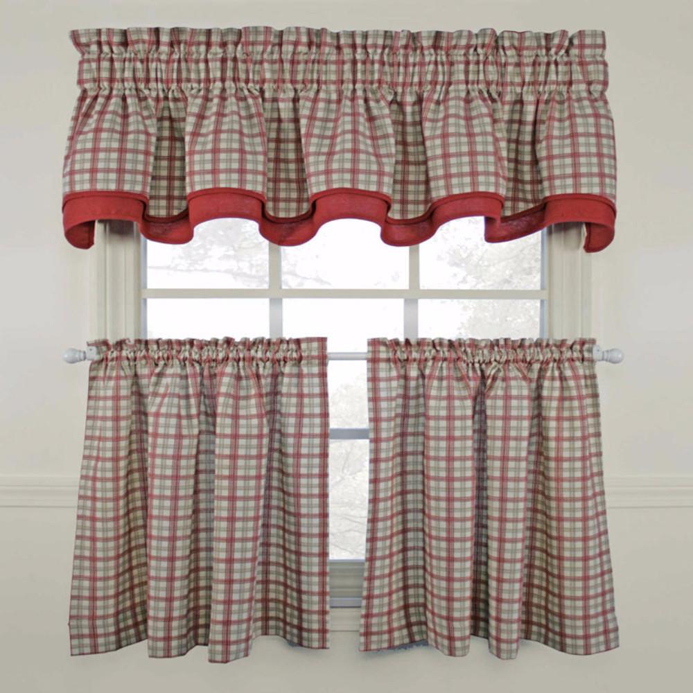 Bring the country look to your kitchen with classic Bristol Plaid tier by Ellis featuring a two toned plaid on an off white background. Also Available is as a Tie-up Valance and a Scalloped Valance