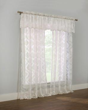 These Brittany Panels and Tailored Valances by Commonwealth, are made of an engineered lace, that can give you the look you desire, at an affordable price. These panels have an engineered scalloped bottom and features both a decorative, and scalloped edge. These curtains are machine washable so they are easy to care for.