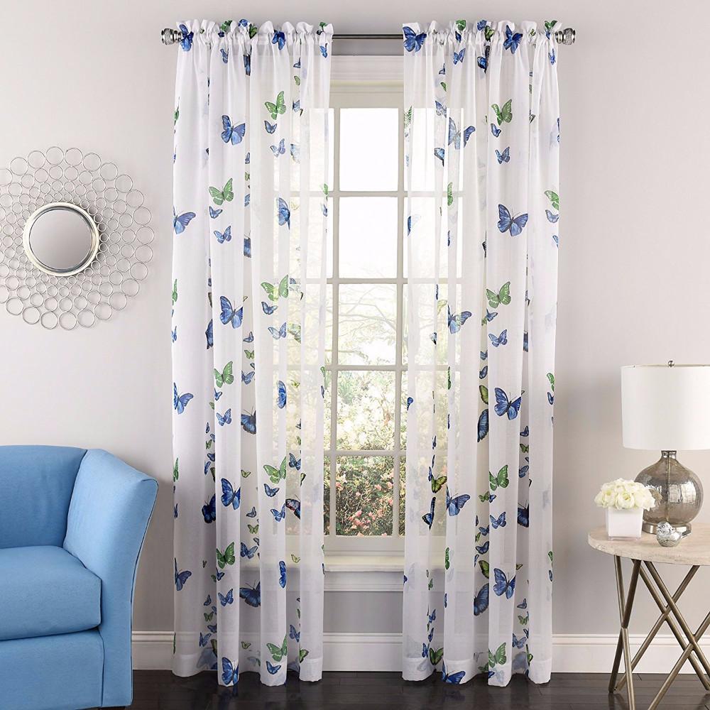 Brighten up any room, with this beautiful semi sheer panel by Lorraine Home Fashions. Featuring boldly colored butterflies,on a linen look fabric, this panel will filter any harsh natural light from entering through your window, while letting the right amount of light to enter through your window. This panel will add style, and interest to any window, and can be used alone, or as an under-panel