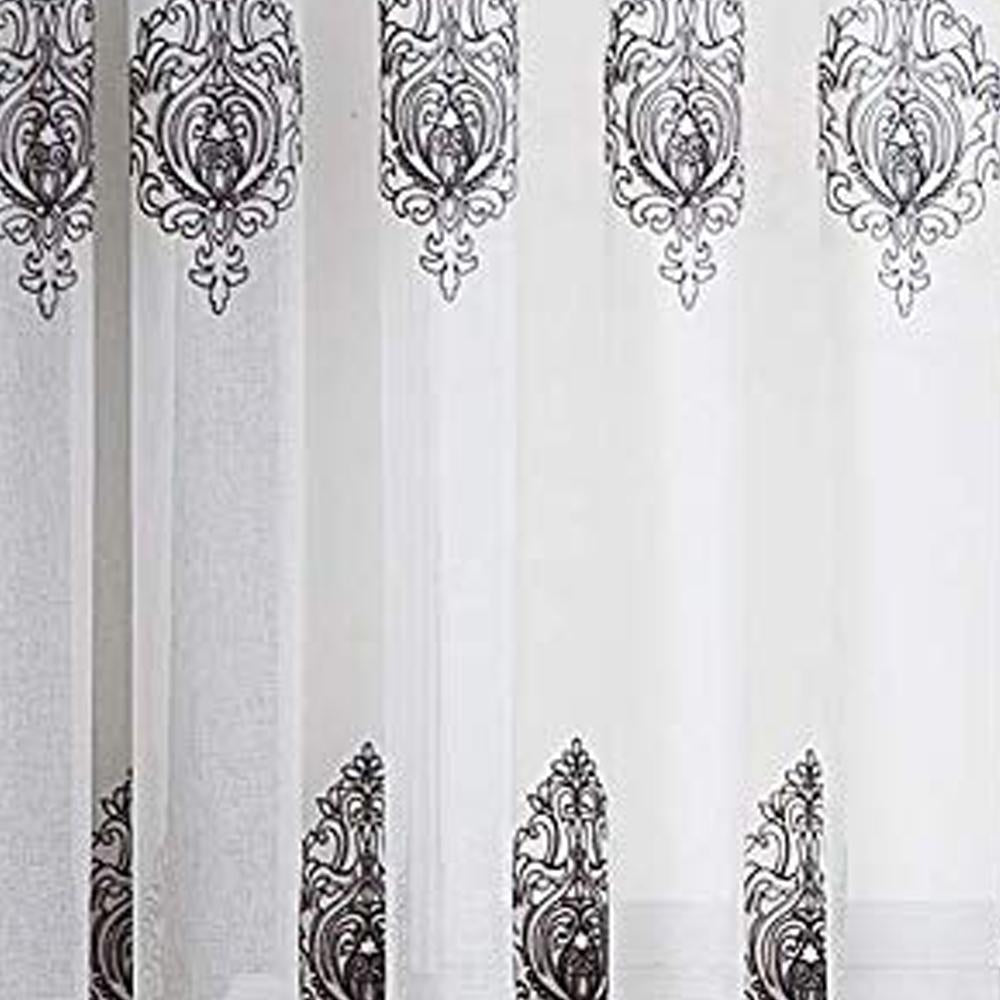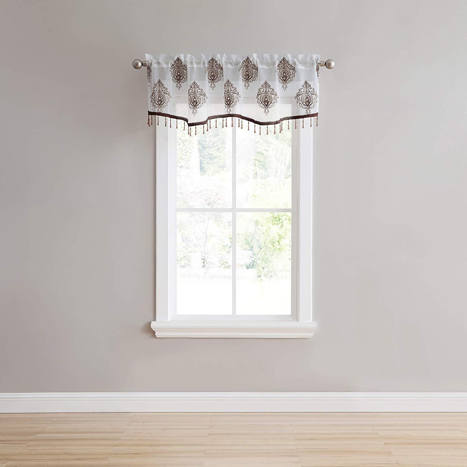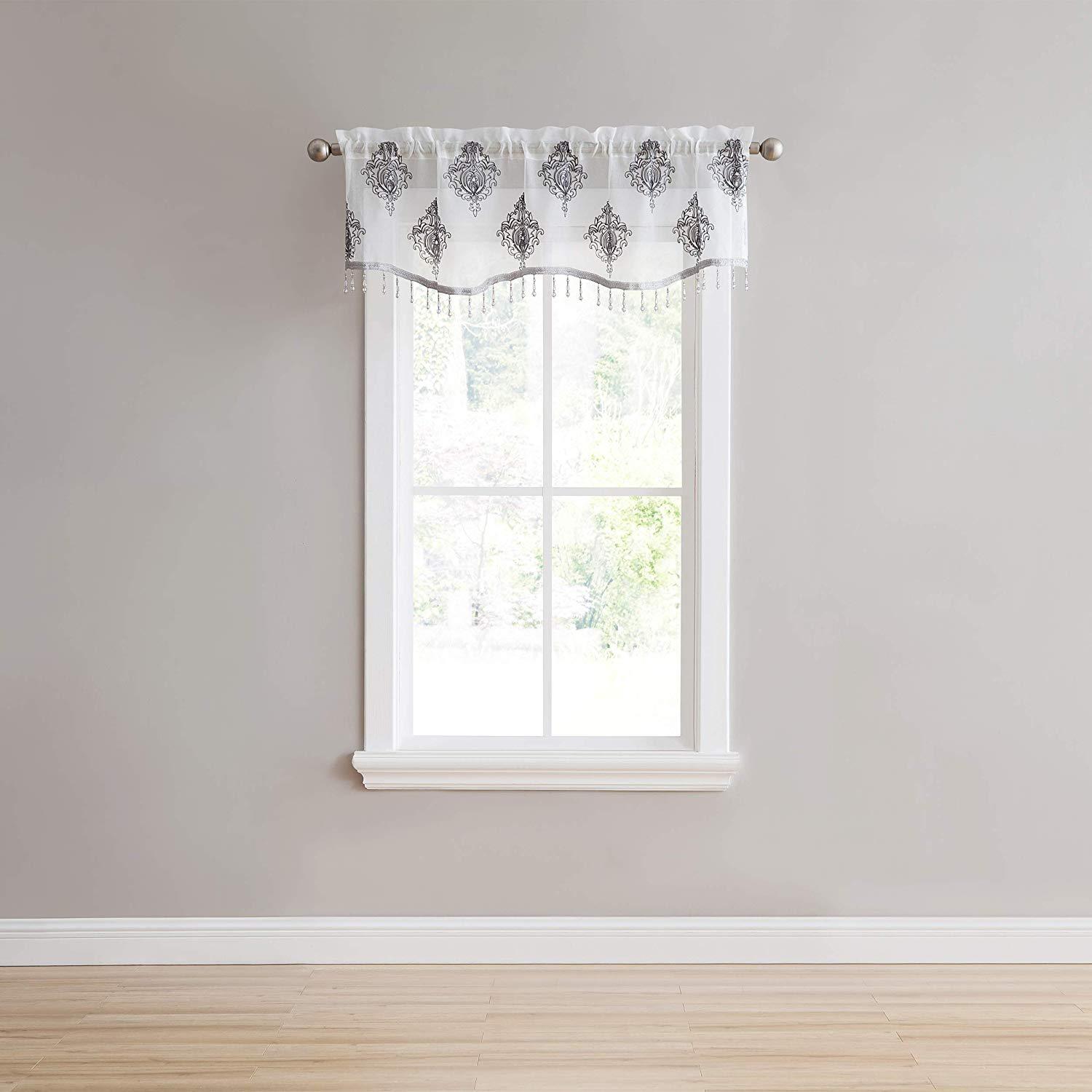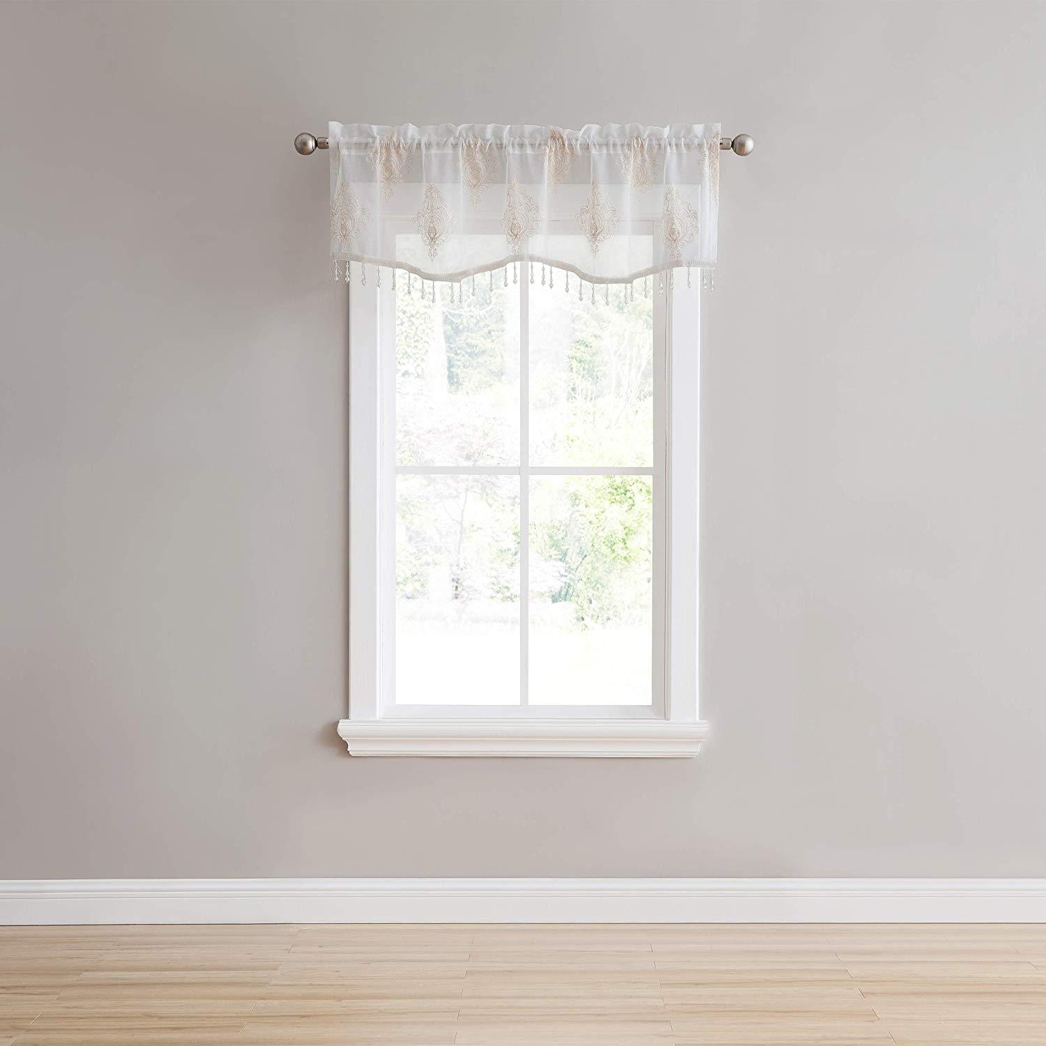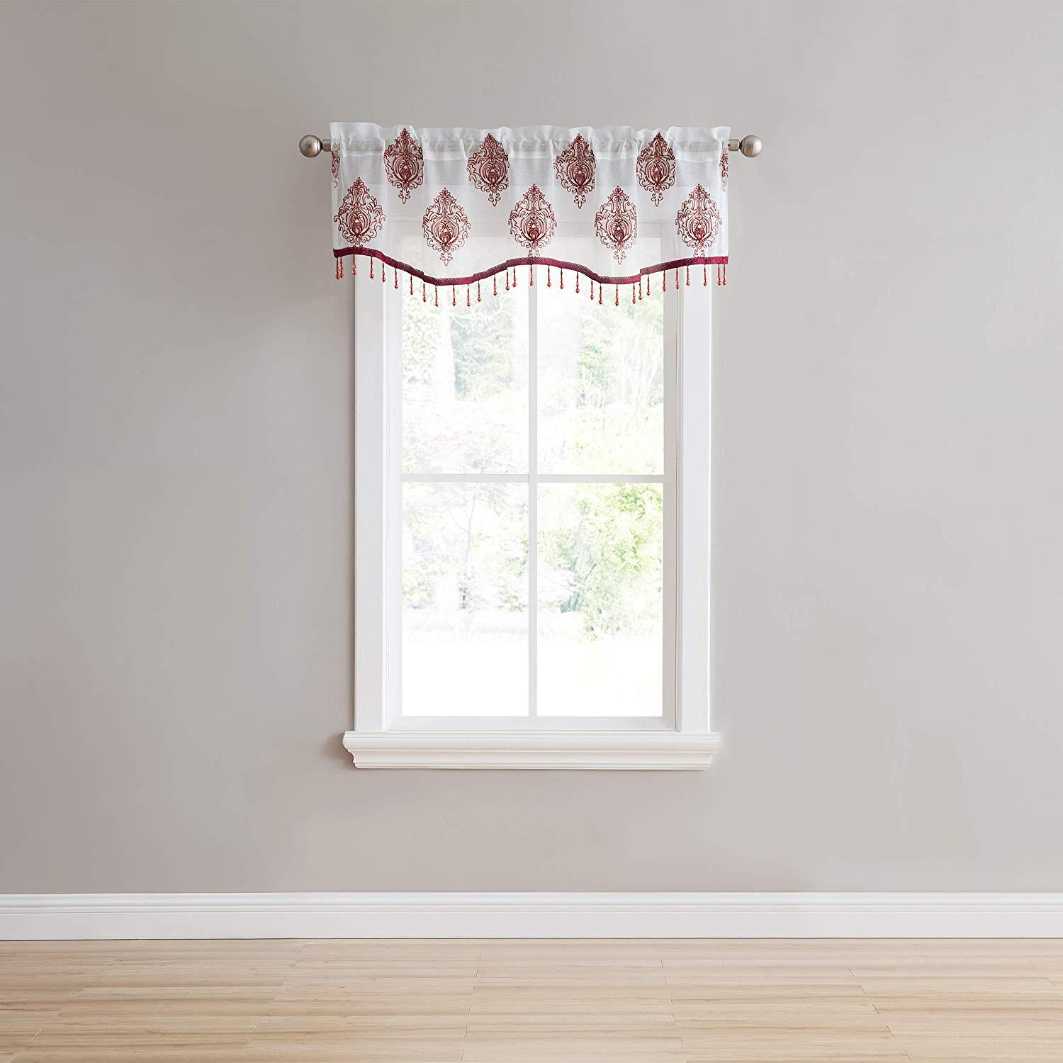 Style up your home with the Camila Sheer Embroidered Panel by Stylemaster! This beautiful curtain features an elegant embroidered pattern that sits on the panel. A curtain the will definitely make a statement in any home. The valance features the same beautiful pattern with a stripe color at the bottom and beads the hang from bottom that match the color as well.