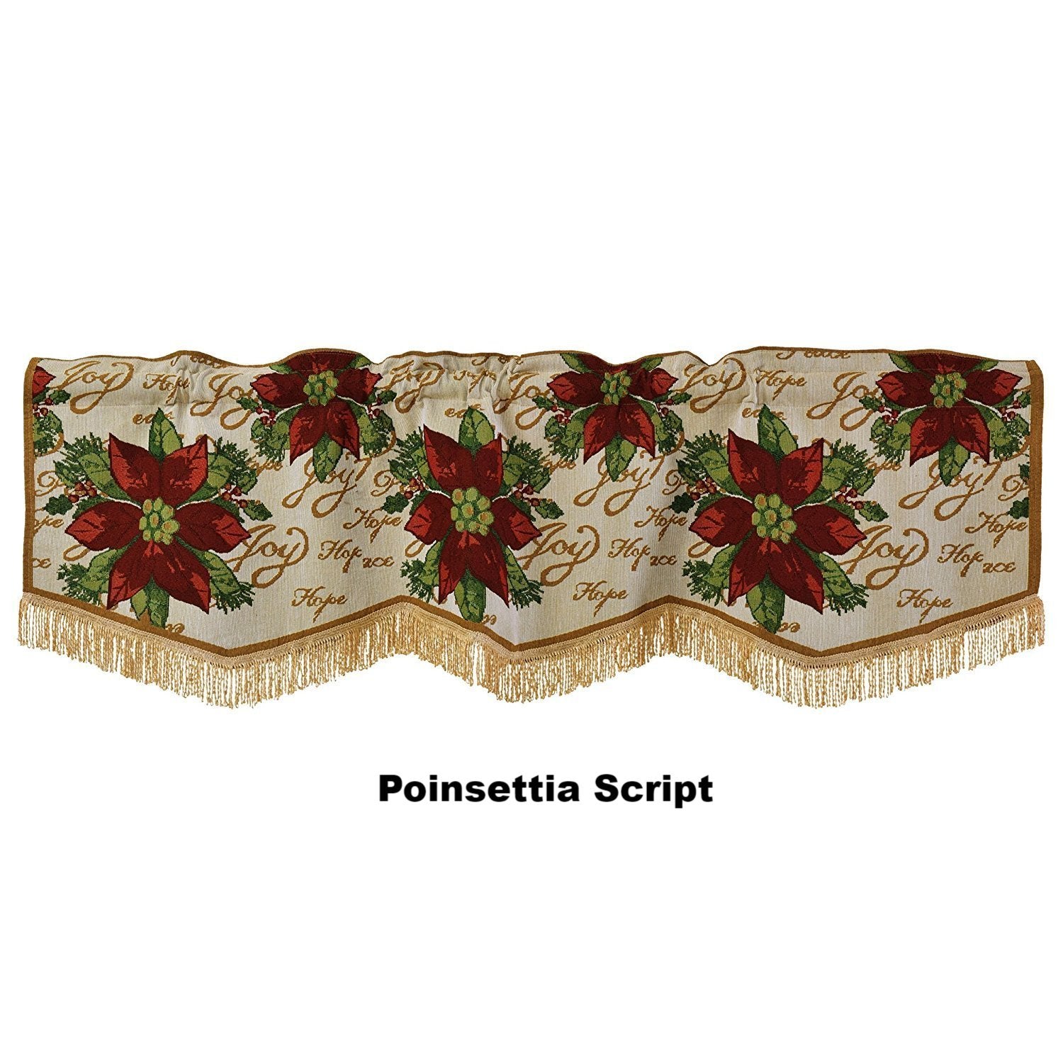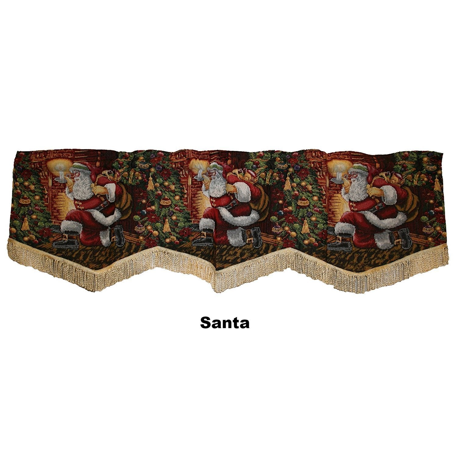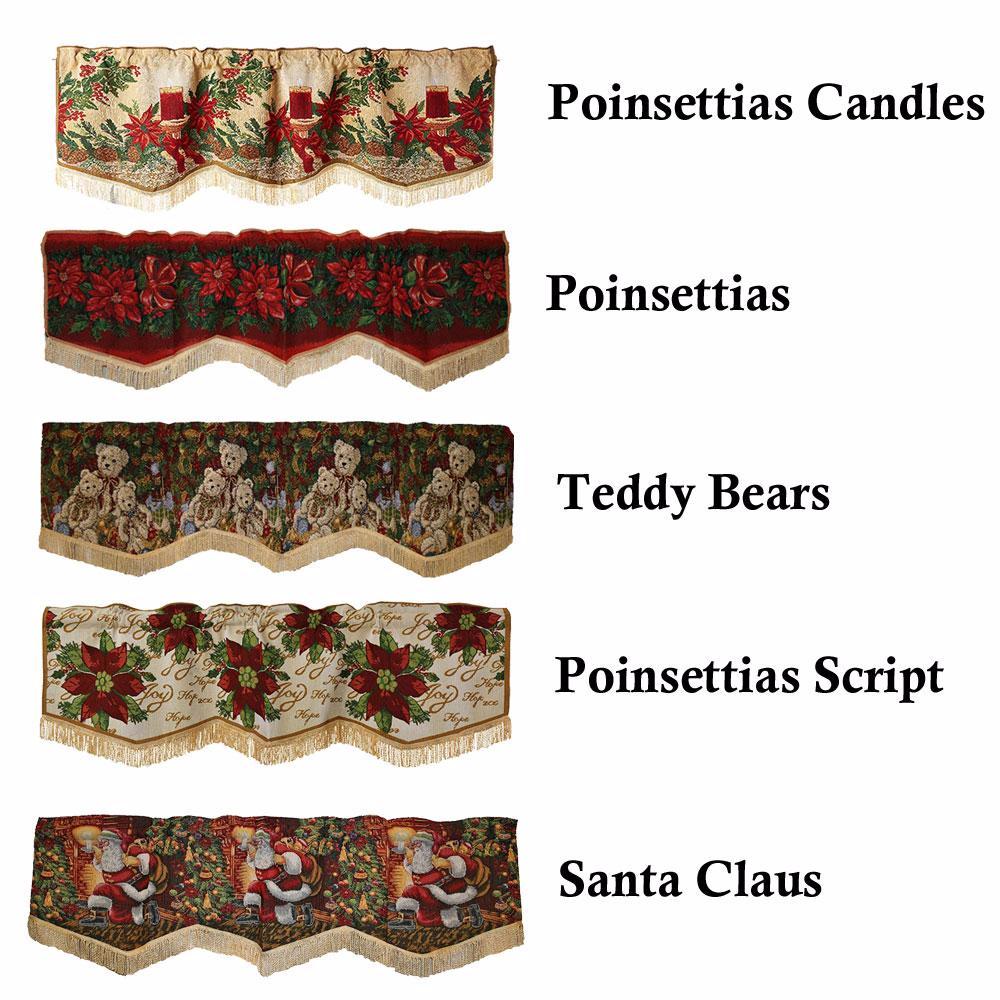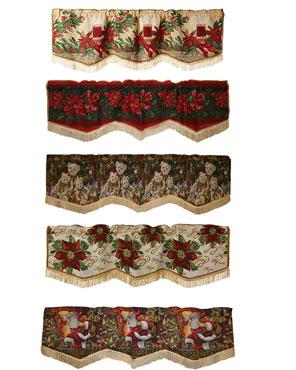 Add a fresh touch this holiday season with these gorgeous tapestry window valance. Available in 5 different designs for you to choose from. Each design is unique, with a needlepoint look and golden color fringe trim for that extra touch. Theses tapestry valance will surely add that extra flair to your Christmas decor.