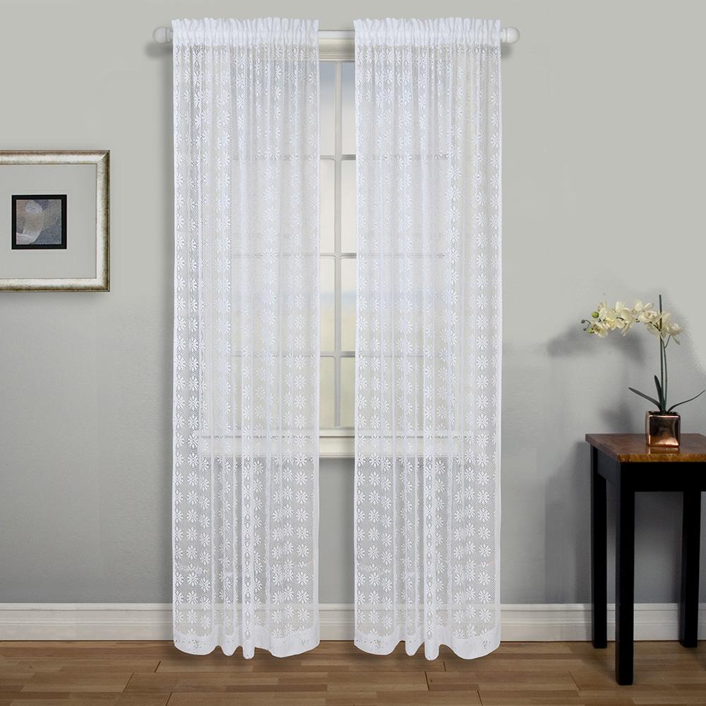 Give your room a classic and elegant makeover with the Crochet Lace Panel by Ricardo Trading LLC! This beautiful curtain features a lace pattern that comes in either white or natural color. The open weave texture of this curtain adds an airy and lightweight texture to windows while also diffusing light and providing some privacy!