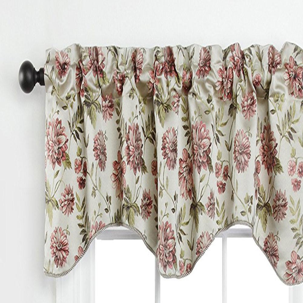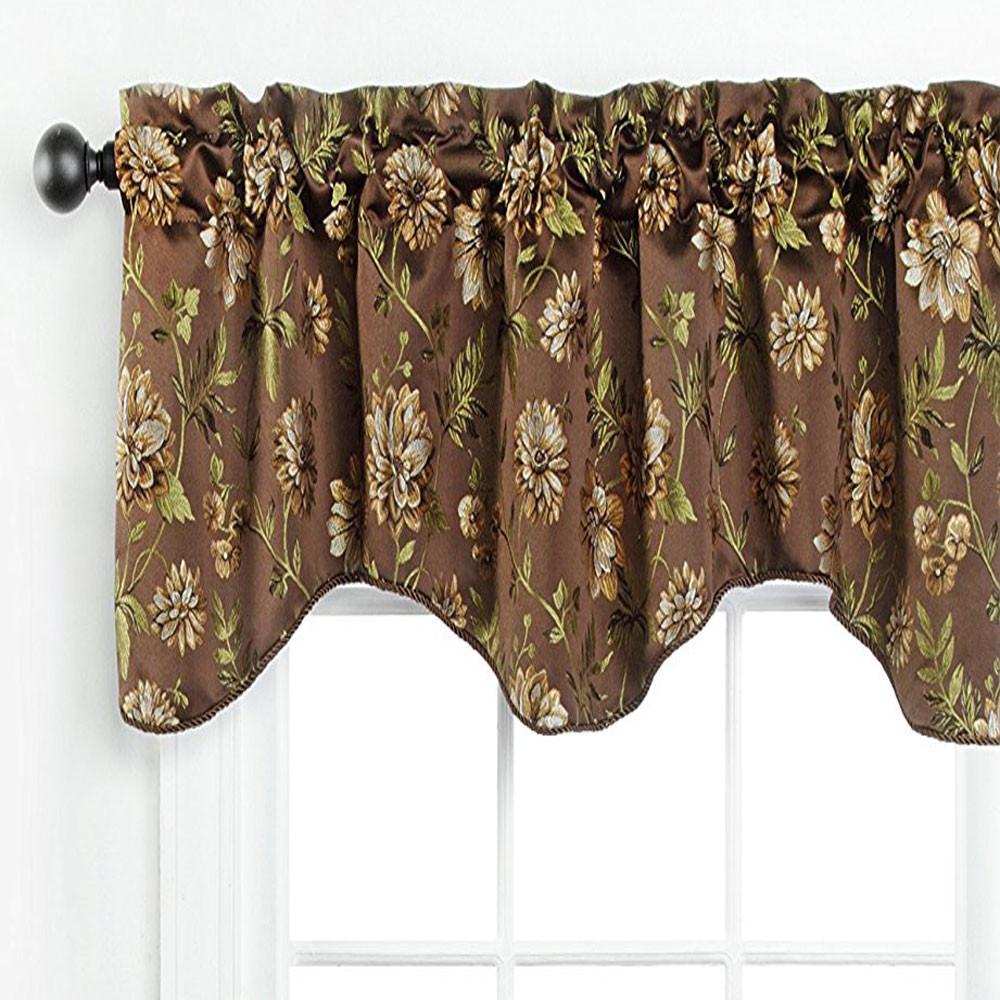 The Dahlia blooms on this floral shaped window valance are long-standing symbols of enduring grace, elegance, and dignity. Allow these beautiful blooms to lend those admirable qualities to your home. With a 3" rod pocket, each polyester, woven jacquard valance has a polyester/cotton lining and polyester/cotton twist cording on its shaped bottom edge.