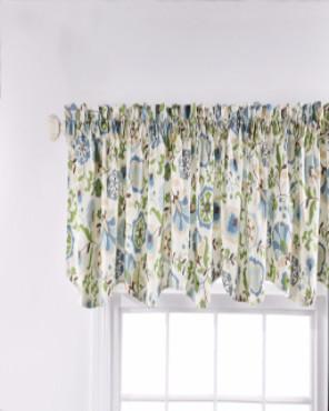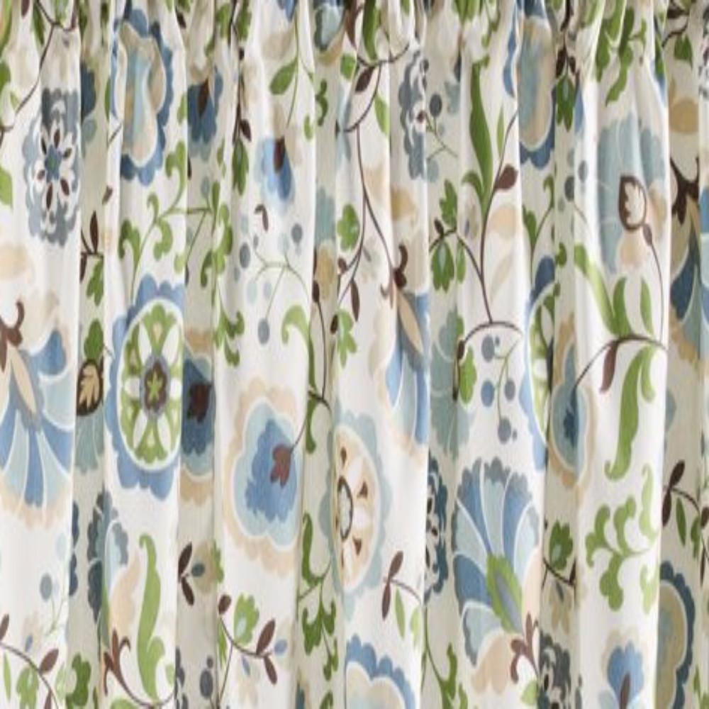 Daphne lined valance by Twill & Birch is a contemporary design lined printed scalloped valance that works with any décor. Daphne is a 100% cotton woven fabric with a Jacobean floral pattern. Daphne in surf has various shades of blue, brown, beige and green. Daphne in crimson has shades of rust, olive, brown, mustard, beige and cranberry. Daphne has a 3” inch rod pocket that will hang best on a Dauphine flat valance rod, available in our curtain rod department.