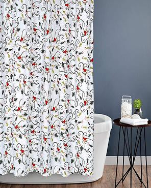 Bring the Christmas spirit into your bathroom with the Deck The Halls Fabric Shower Curtain! This shower curtain features a beautiful green and gold mistletoe pattern along with a red and white stocking that flows throughout the entire curtain.