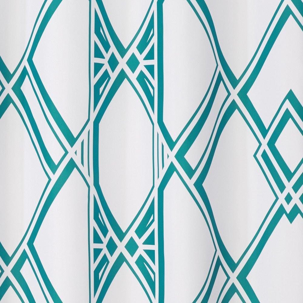 Add a bold contemporary touch to your bathroom, with the Deco Geo Shower Curtain by Inter Design. Featuring, a geometric pattern, on a white background this shower curtain, will enhance any of your already existing bathroom decor. Made with 12 reinforced buttonholes for extra durability, this shower curtain will fit most standard showers.