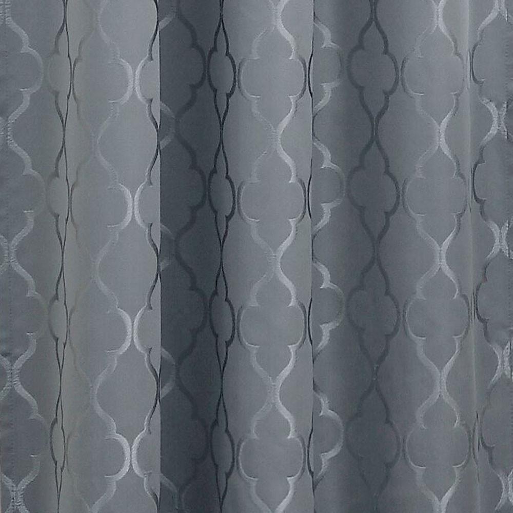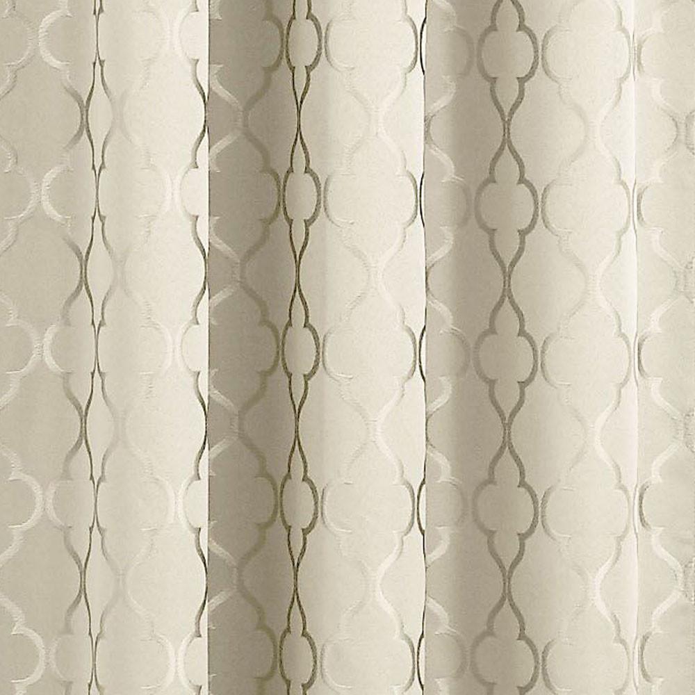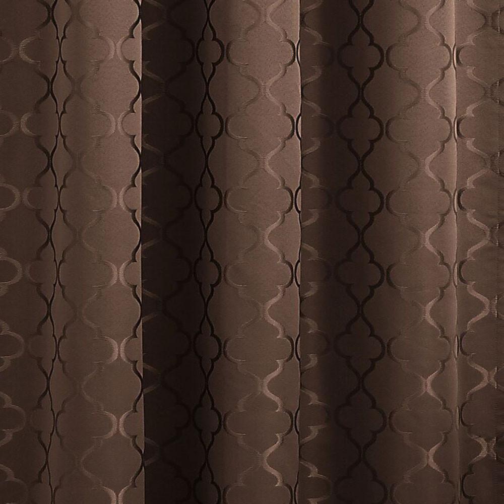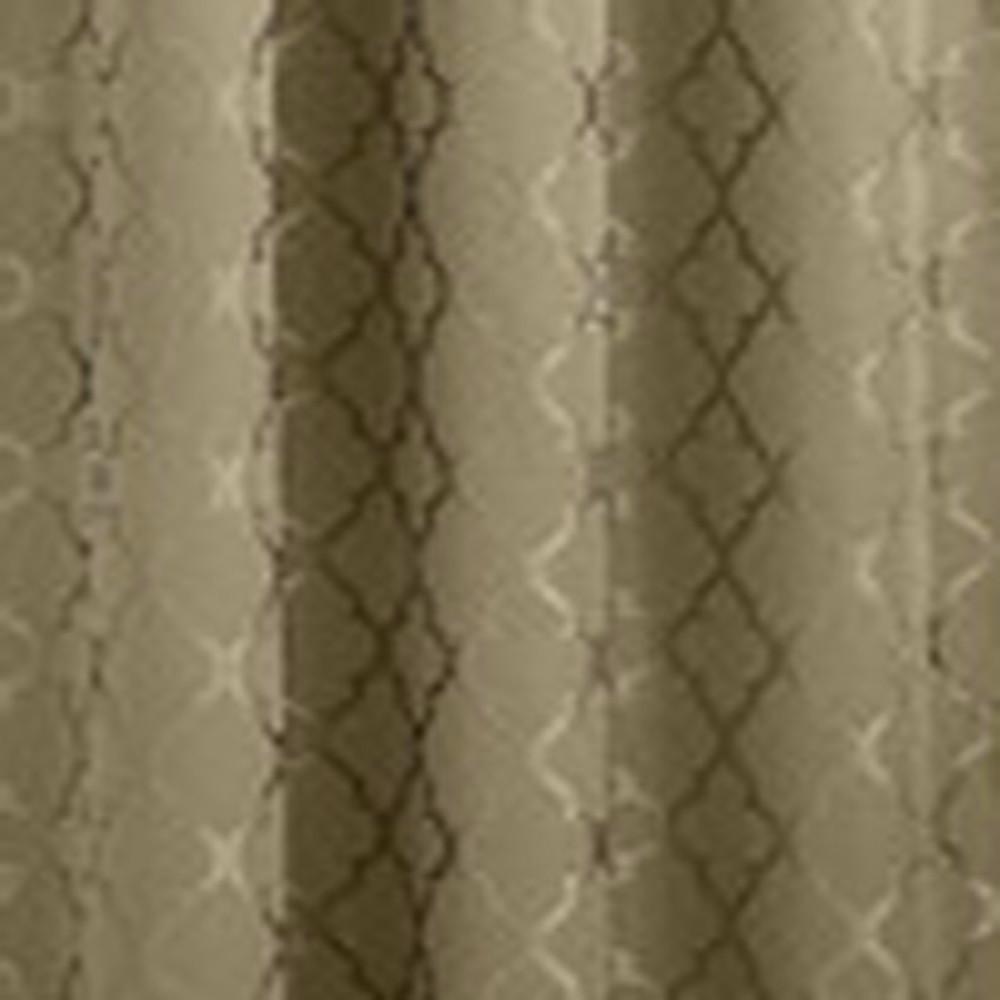 This elegant blackout lined valance by Lichtenberg features a scalloped diamond pattern on a solid color background as well as a scallop bottom with gimp edging.