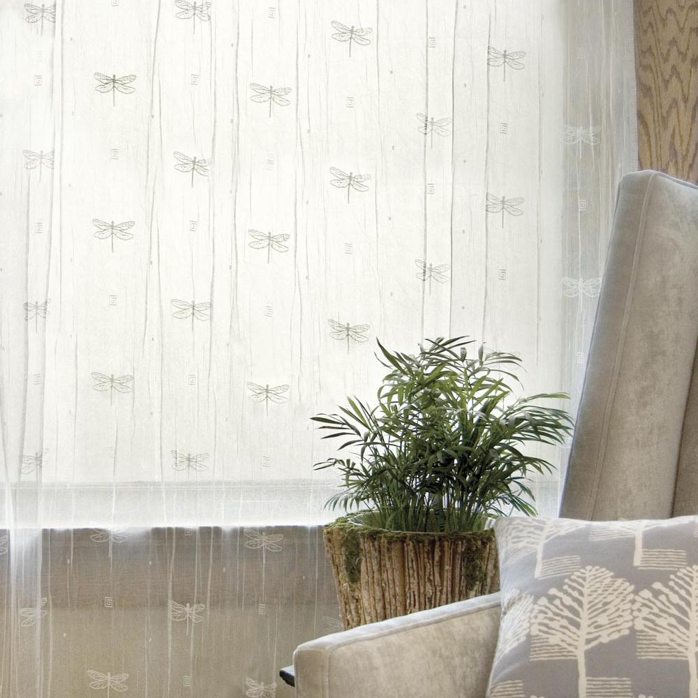 Let there be light with the Dragonfly Lace Panel by Heritage Lace. These beautiful panels feature dragon flies scattered throughout the panel and valances along with a trim of small shells.