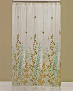 The Dragonfly Garden Shower Curtain manufactured by the one and only Saturday Knight features shades of brown, blue & green, and it is surrounded by Dragonflies and different color leaves. The shower curtain is a frosty white color and it’s very easy to clean, just grab a damp cloth and wipe clean.