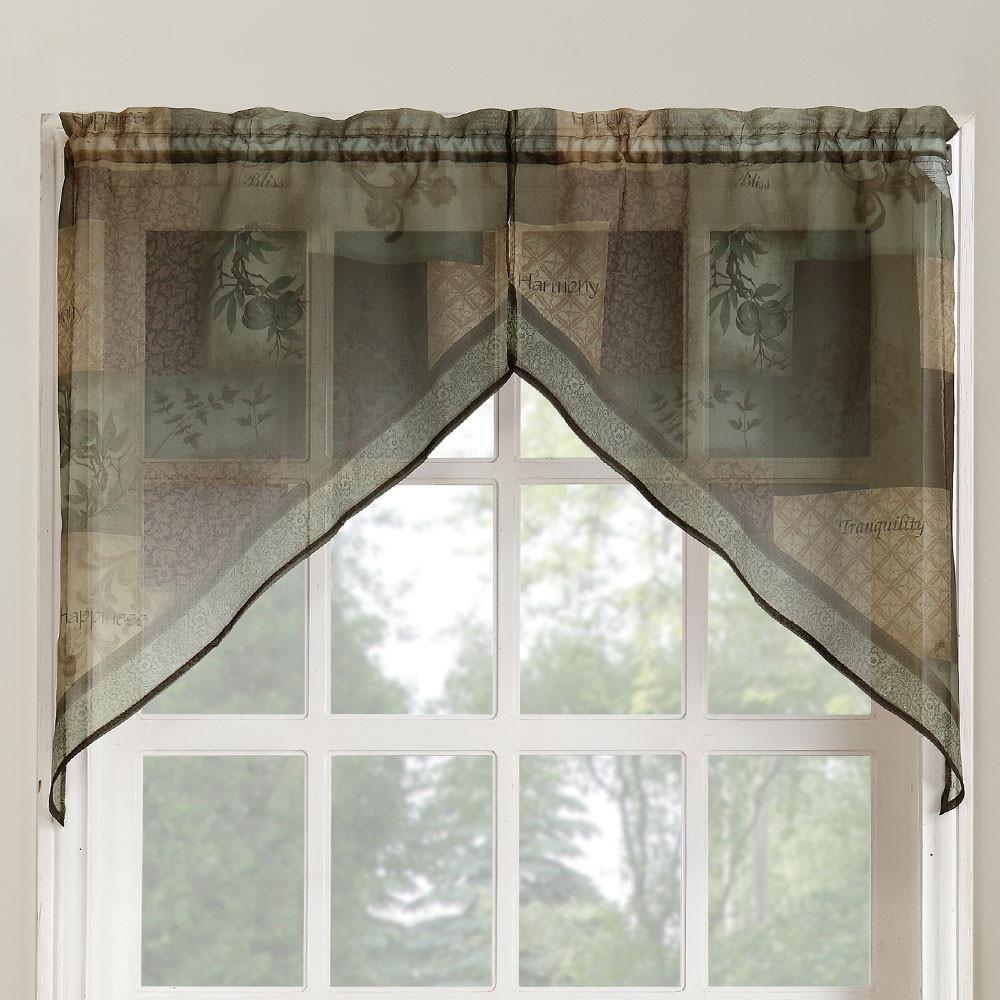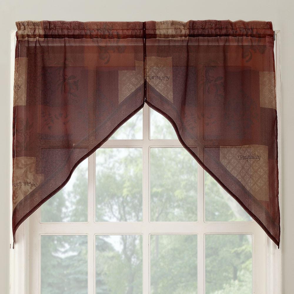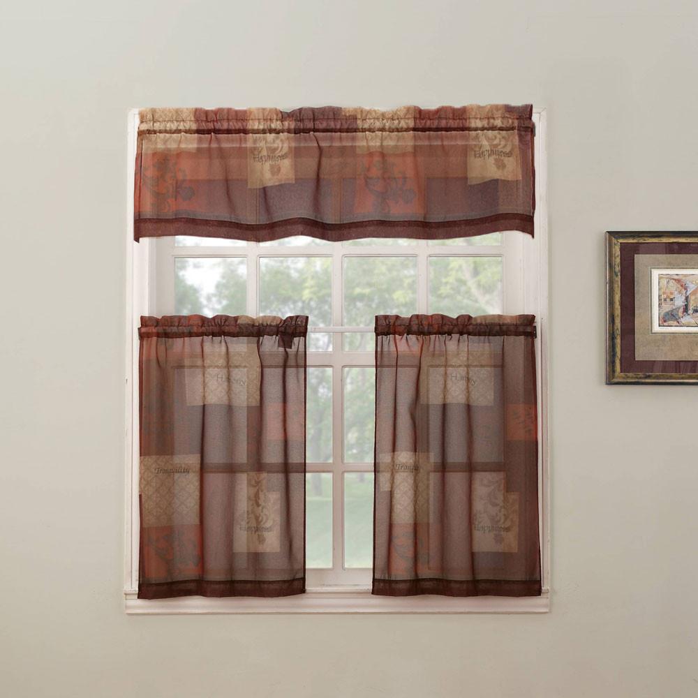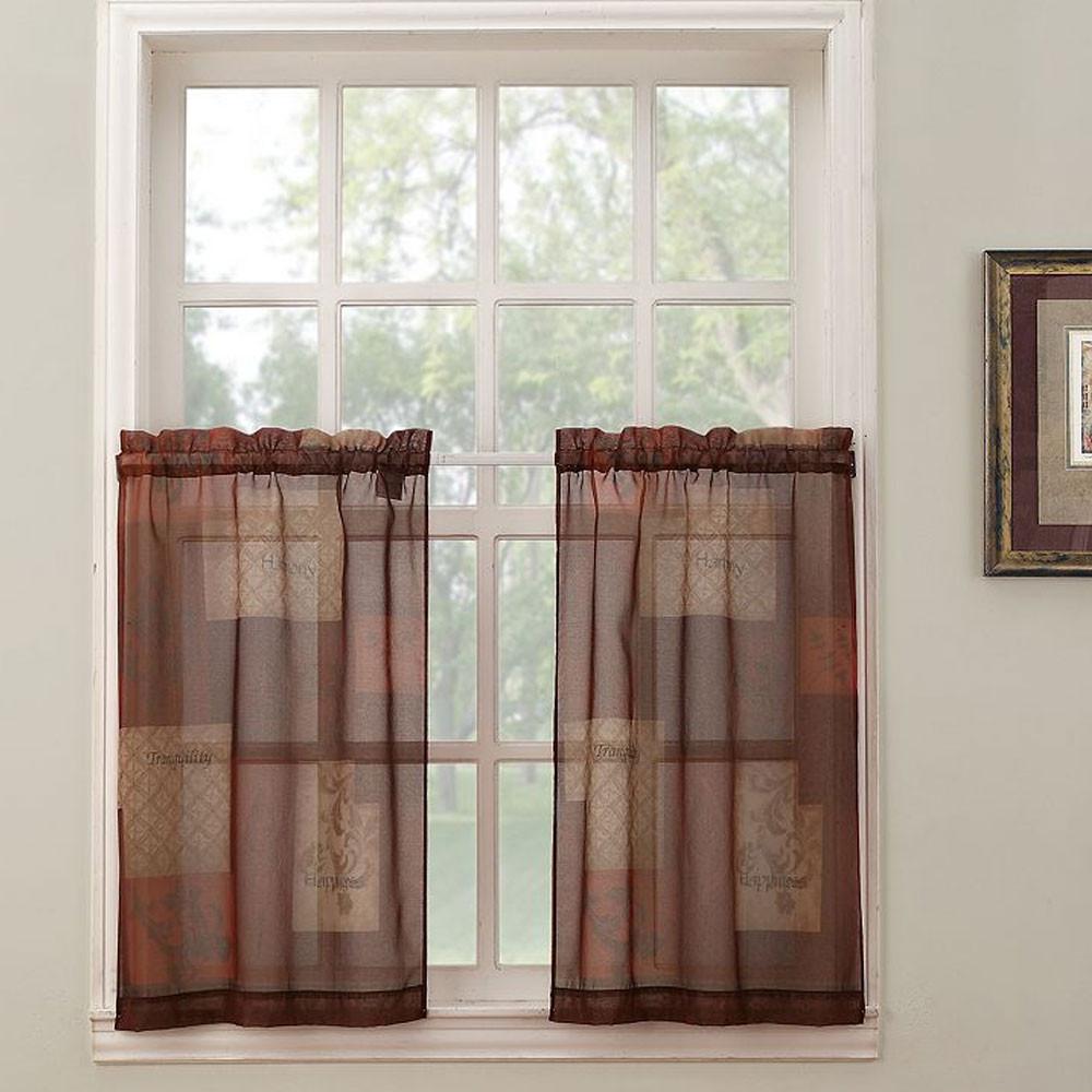 Eden is a sheer voile fabric tier curtain that is adaptable for use in the kitchen, dining or living spaces. The Eden kitchen curtain features beautiful colors like brown, cream and rust with words like happiness and tranquility which transmit peaceful thinking.