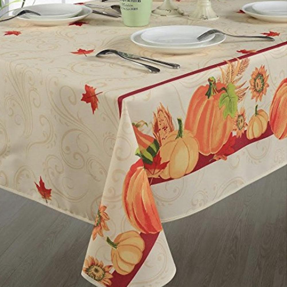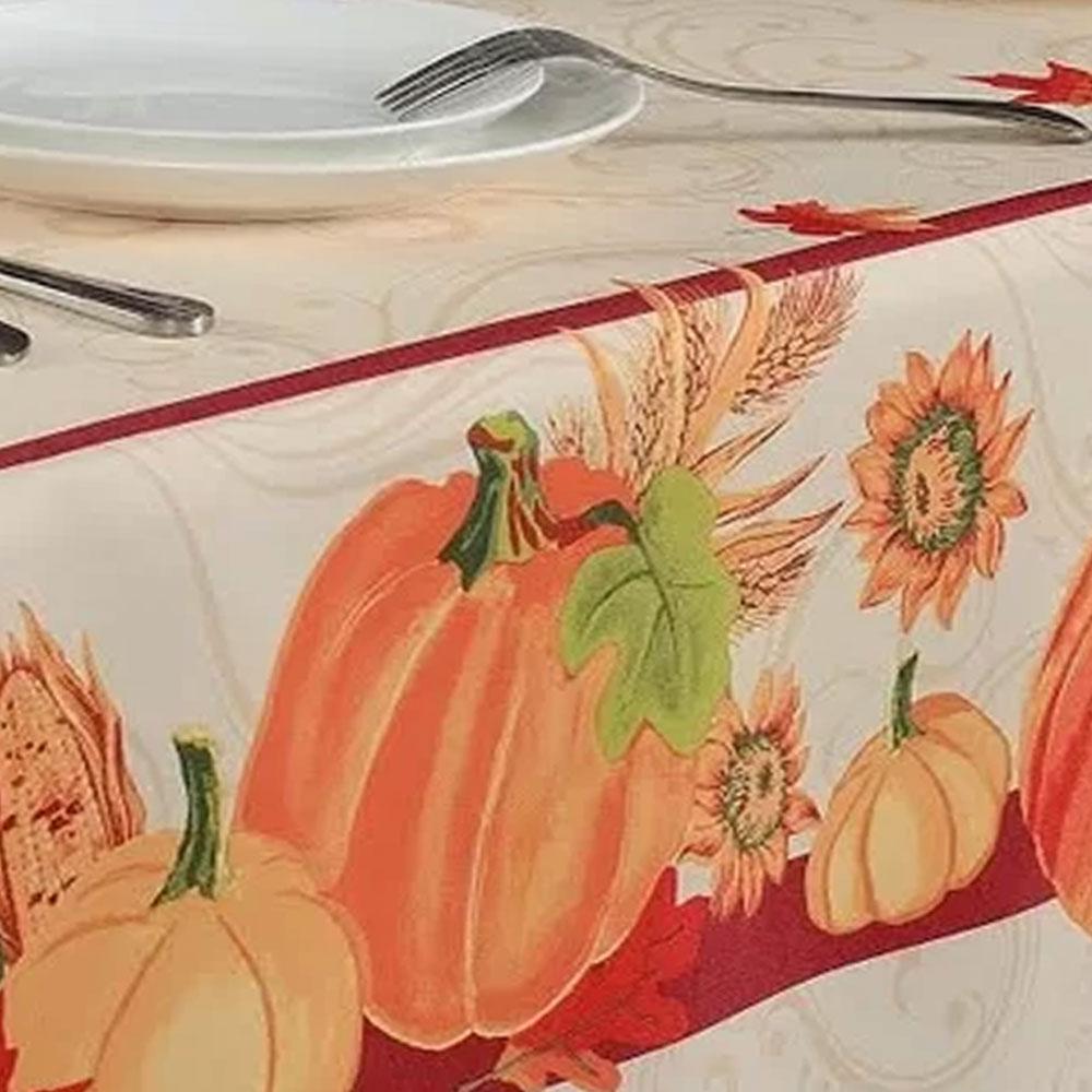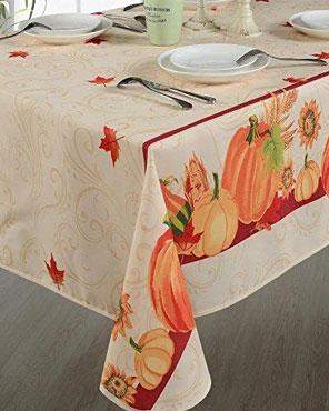 Spice up your home’s dinning décor this fall and Thanksgiving with this beautiful European Autumn Leaves Fabric Tablecloth. This gorgeous tablecloth with pumpkins and corn print on the side will surely add flair to your holiday table setting without hurting your wallet. Available in 4 sizes