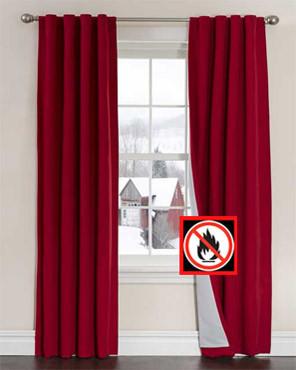 Firefend Flame Retardant Curtain Panels by Louis Hornick & Co, offer you safety and style. The certified self-extinguishing flame-retardant curtain fabric is the first ready-made flame-retardant curtain collection on the market, providing safety and protection for your home, business and family. Firefend curtain panels feature back tabs to create a rich pleated design. The Firefend panel also allows you to hang the panels straight across for a traditional rod pocket look. Each Firefend panel has a white lining that reduces outside light, noise and helps you save on the heating and cooling cost in any room. The blackout lining and noise reduction create the quietest atmosphere for a great nights rest, with peace of mind offered by the flame retardant material.