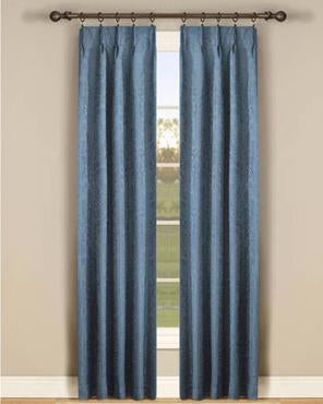 Gabrielle is a solid colored jacquard curtain panel pair that can be hung on a traverse rod or decorative rod for a designer look. Gabrielle is a thermal pinch pleated panel pair by Stylemaster with an insulated foam back that will protect your home not only from harsh winter drafts, but it will also help keep your home cool during the warmer months. The foam backing saves you money on your energy cost and also blocks light for a better sleep! The two panels are pleated to create a gathered look and have a rich tone on tone paisley design. For pinch pleat panels you will need clip rings, drapery hooks or drapery pins in order to hang each panel.