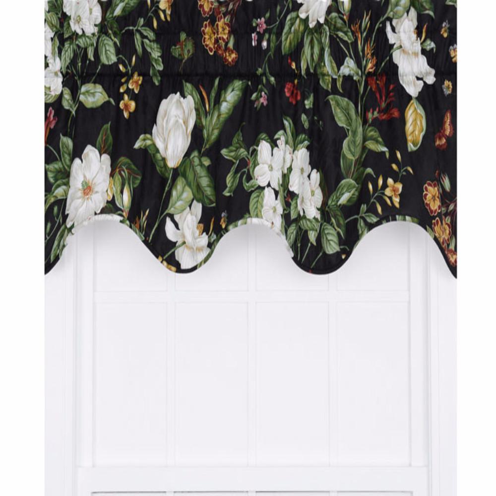 An exquisite valance by Ellis with an all over floral pattern on a solid background.