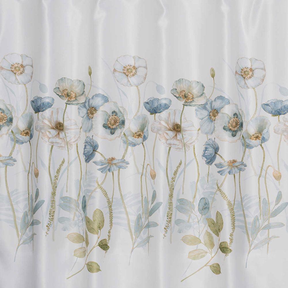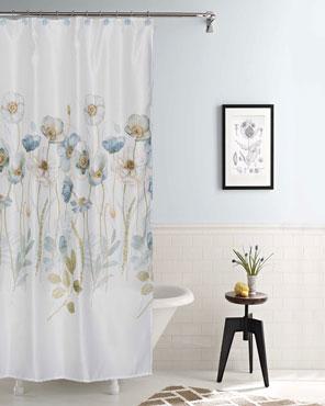 Add a touch of contemporary style to your bathroom with the Garden Melody Fabric Shower Curtain. Featuring a lovely watercolor inspired floral design in blue, white and green , this shower curtain will transform any bathroom, and coordinate with any of your already existing decor.