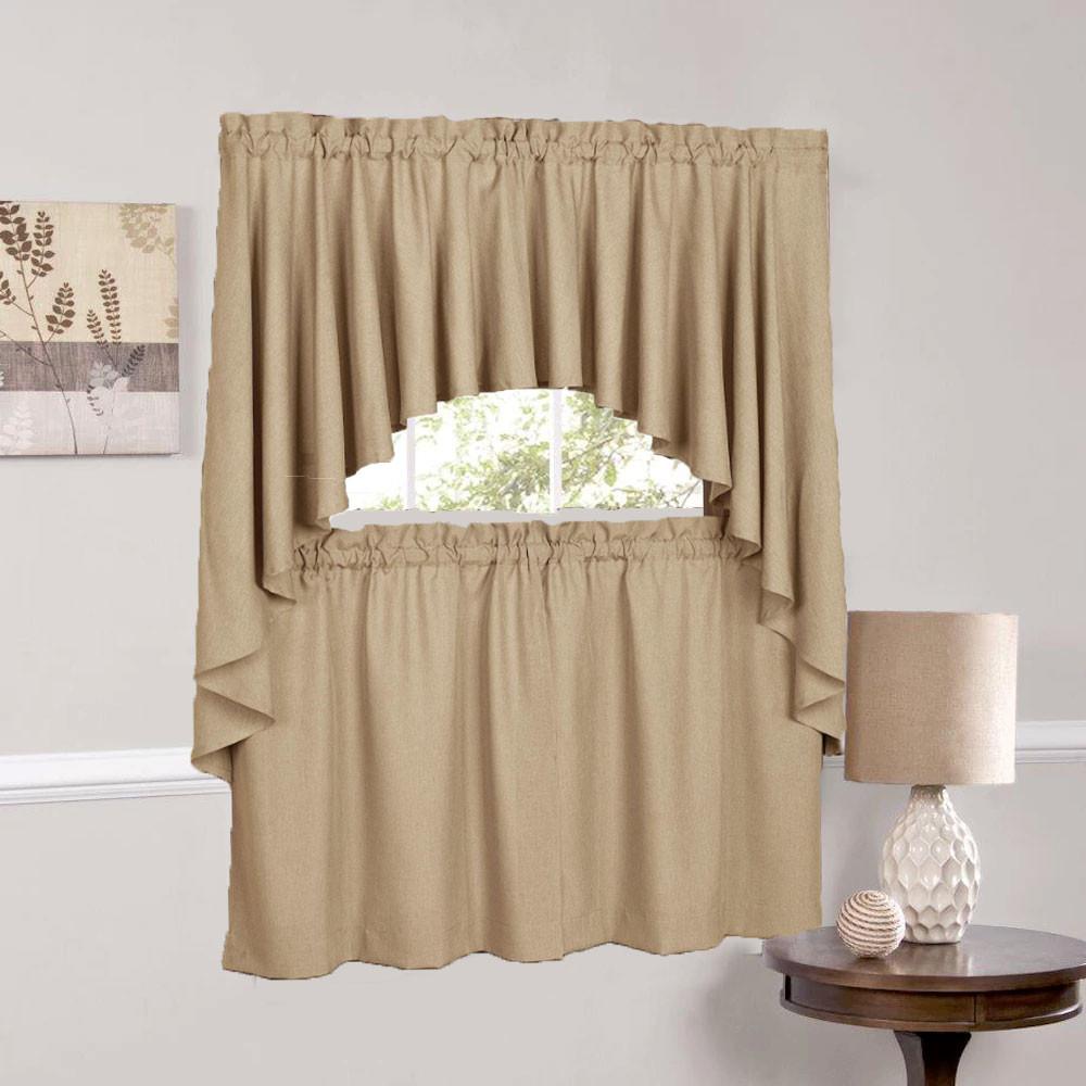 Glasgow tiers and valance by Ricardo is a versatile, soft textured basic curtain styled to frame your windows beautifully. The extra wide valance is cut on the bias for maximum fullness, creating a charming pleated look. Glasgow is available in various earth tones which will work well in any room with a warm ambiance. With a 1.5” Rod pocket Glasgow valance and tiers will look great in any room and can be hung on a conventional or decorative rod.