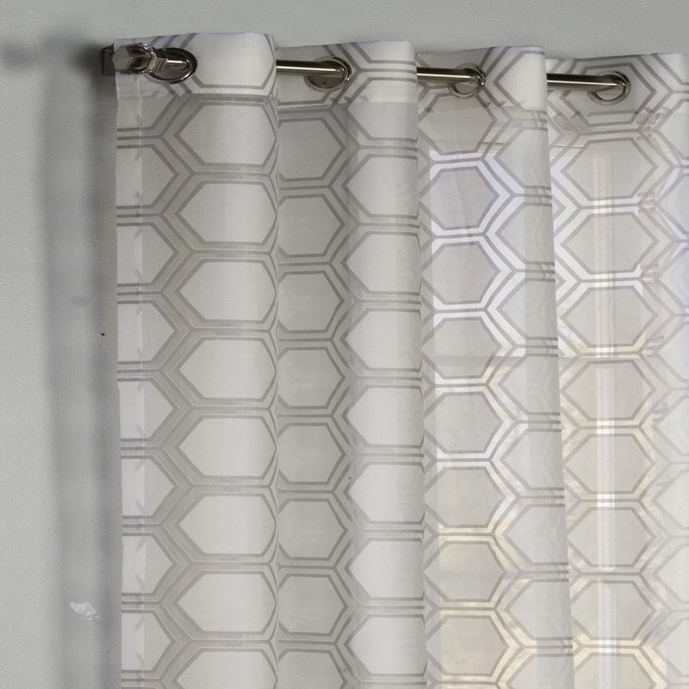 Madison is an all over designed hexagon motif. This design is printed and then through a very intricate process the background is burnt out leaving a sheer portion of the panel exposed for a light airy feeling. Available in the color Taupe, this panel will easily coordinate with most of your already existing home decor.
