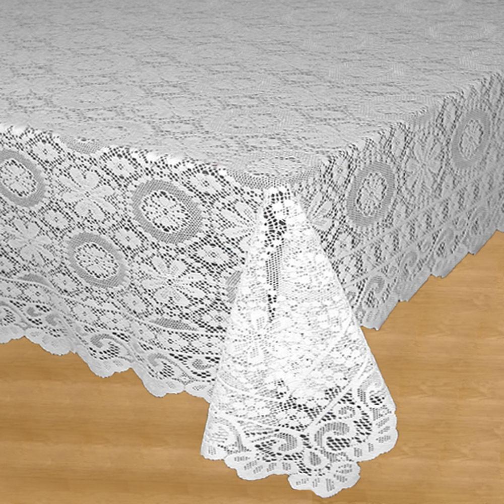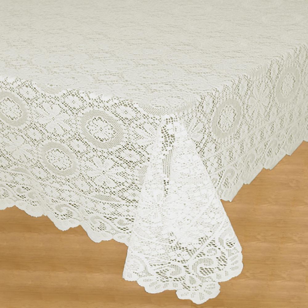 Transform you dining room table with this sophisticated Lace Tablecloth. This heavy weight jacquard knitted lace tablecloth is engineered with lofted yarns in a classic pattern reminiscent of old world Scottish lace. Features an allover medallion design finished with scalloped bottom edges. You can complete the full look with matching Balloon Shade (sold separately).