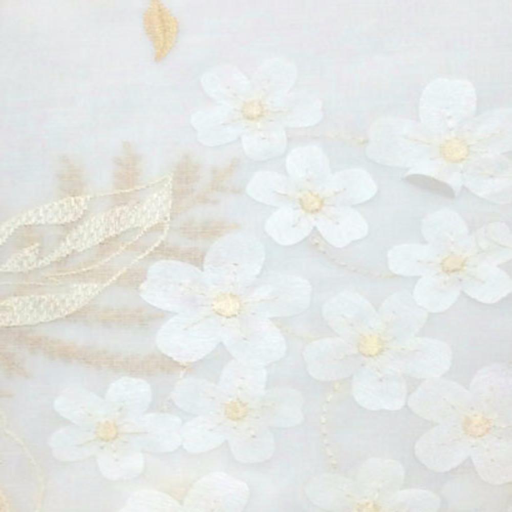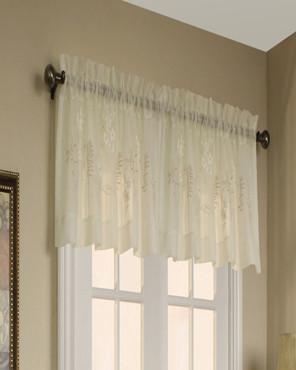 This Faux linen pole top valance by Commonwealth is a layered to create a floral and leaf pattern.