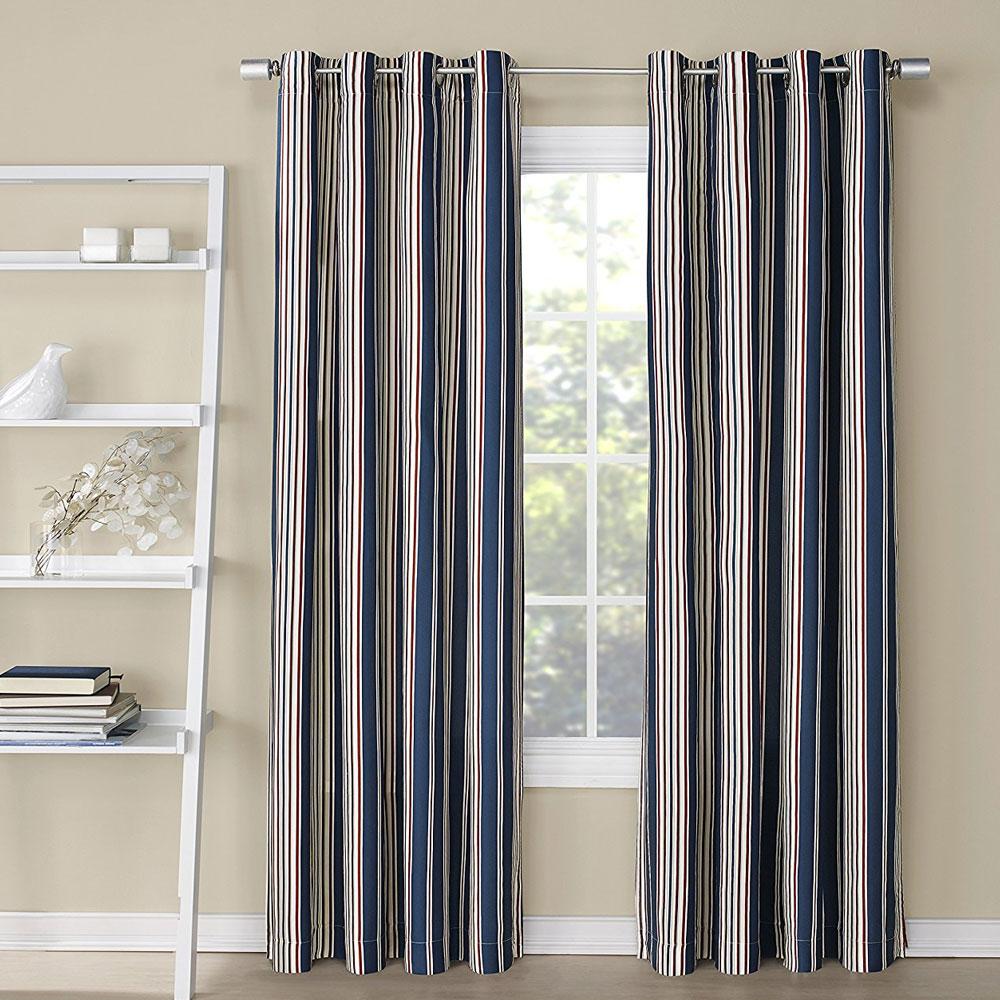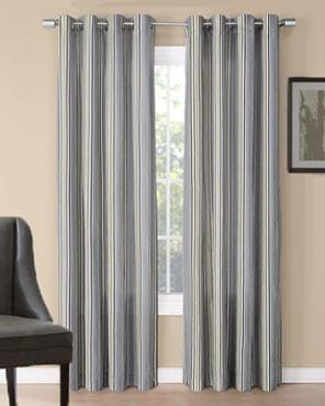 Kent Printed Grommet Top Panel features a classic stripe design to complement most traditional decor. This panel hangs beautifully on (8) silver colored grommets with a 1.6 inch inside diameter which fits most decorative curtain rods. Available in 2 sizes with each panel measuring 52 inches wide by 63 inches long or 84 inches long. With 3 different colors to choose from one is sure to complement your home. Purchase additional curtain panels to create a voluminous look or to style wider windows. (Each panel is sold separately)