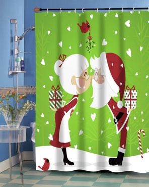 The Kissing Claus Fabric Shower Curtain is sure to delight family and friends this holiday season with its bold, fun and whimsical design. This festive holiday themed shower curtain from Carnation Home Fashions will be an excellent addition to your bathroom and will add that extra dose of Holiday spirit to your existing decor. Shower curtain liner recommended.