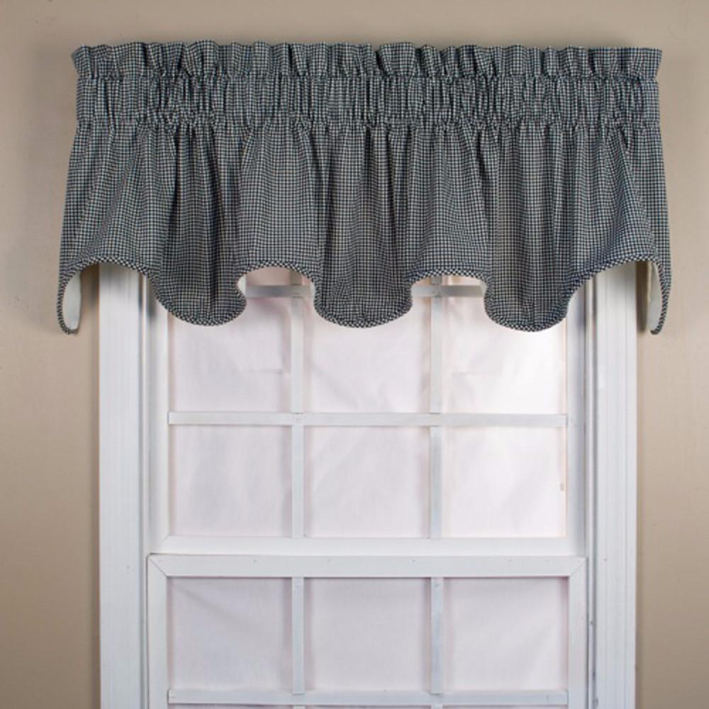 The Logan Scalloped Valance is made from high quality cotton check print which is available in black. The Logan Scalloped Valance will accommodate approximately 45-50 inches of window width. Multiple valances can be used on the same rod to accommodate wider window widths. This valance looks great alone or when combined with coordinating Logan tailored panel curtains or tailored tiers curtains (sold separately).