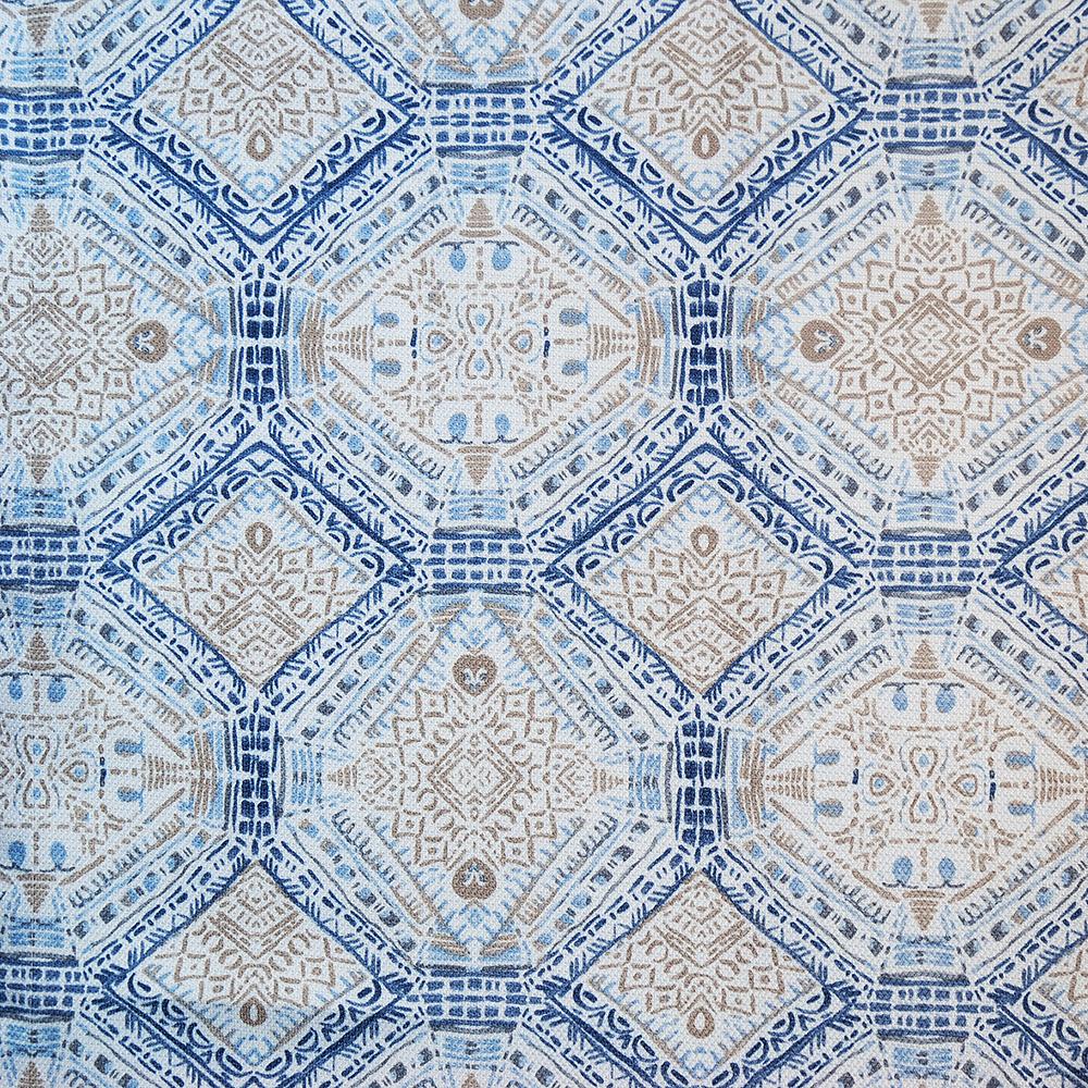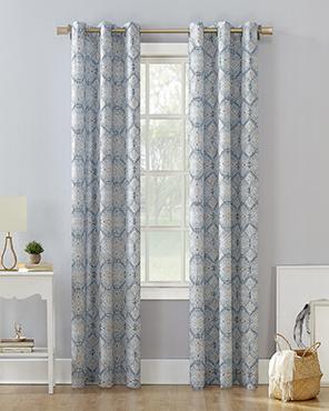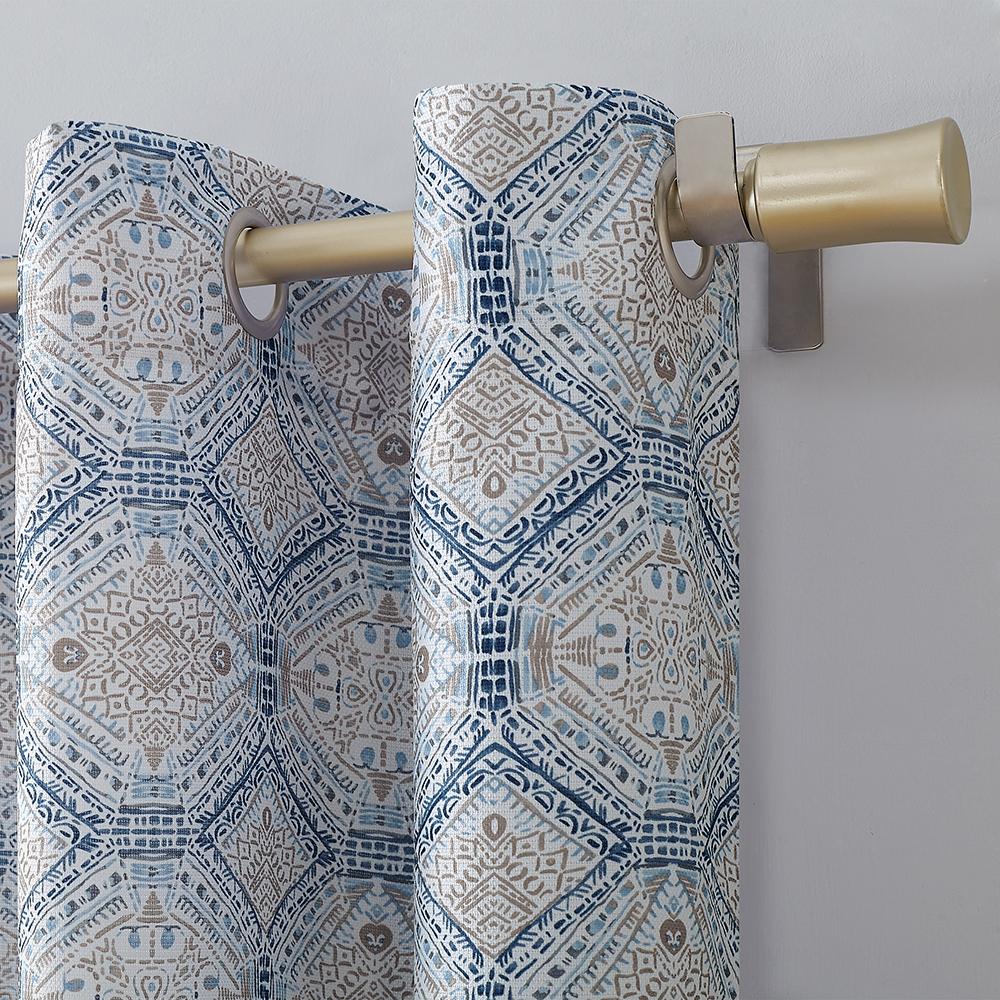 Bring the cool with the Lotan Grommet Top Panel. This curtain features an intricate design that flows beautifully throughout the entire curtain. The pattern features colors such a dark blue, sky blue and gold.