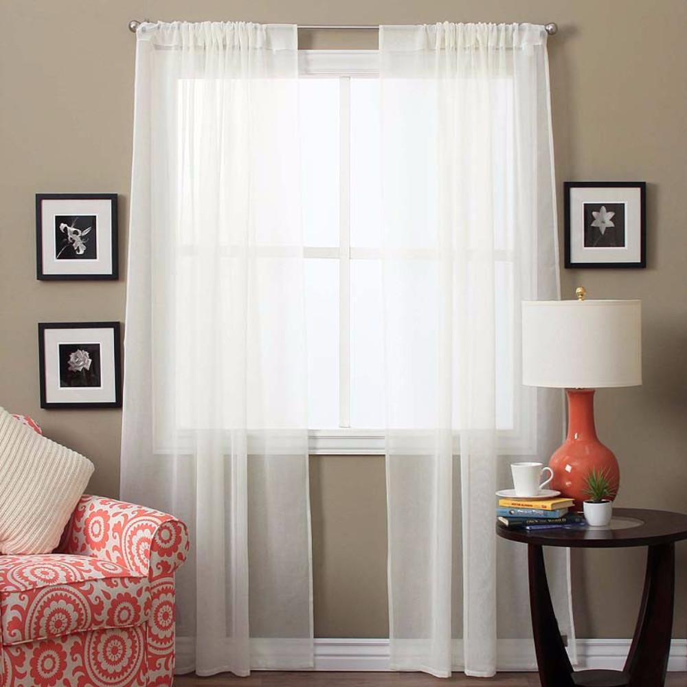 Lucerne sheer rod pocket panel pair by Ricardo is a medium bodied sheer that creates warm lighting in any room thanks to its gauze like texture. Lucerne create a luxurious fullness, the pair of panels comes with a pull wand that can be attached to either side of the panel so you can glide the panel with ease on any rod. Lucerne sheer panels work well alone or when used with coordinating drapes. The pair together equals 104 inches in width, but each measure 52" inches.