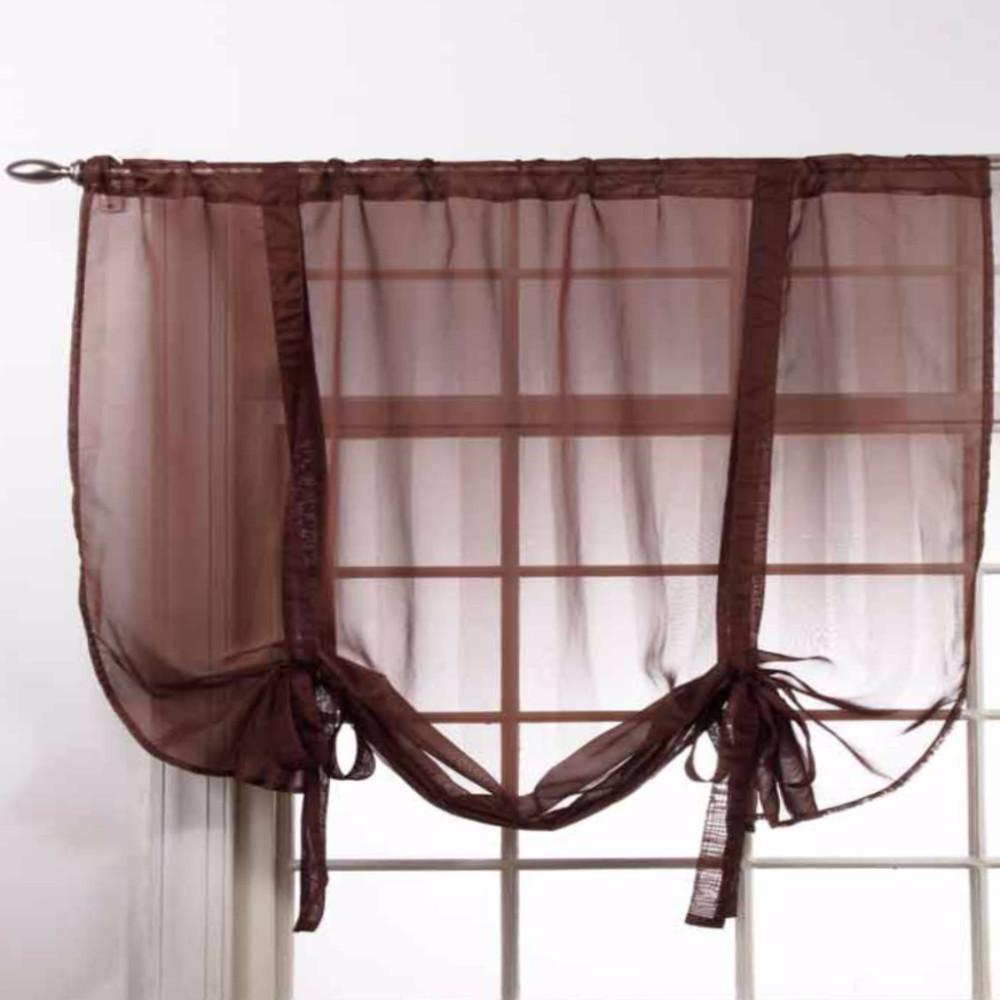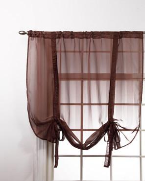 This tie up shade by Stylemaster has a simple yet elegant design combination of voile sheer with a satin vertical stripe. Adjusting the shade height is easy, just tie the straps under the shade and set any height you desire. Panels and Grommet Top panel are also available.