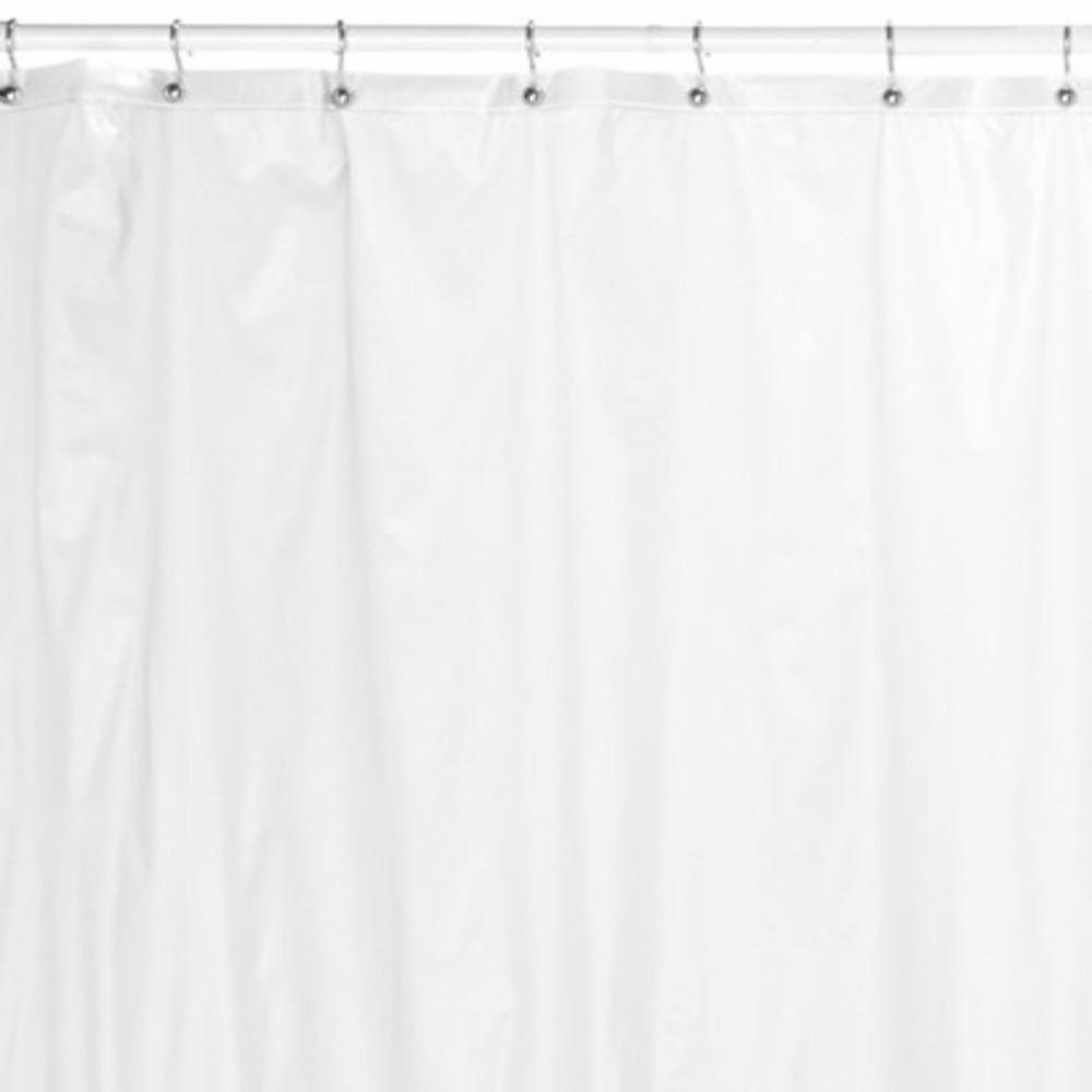 This extra heavy gauge vinyl shower liner has a lifetime anti-mildew resistance treatment, reinforced mesh header and seamless edges.