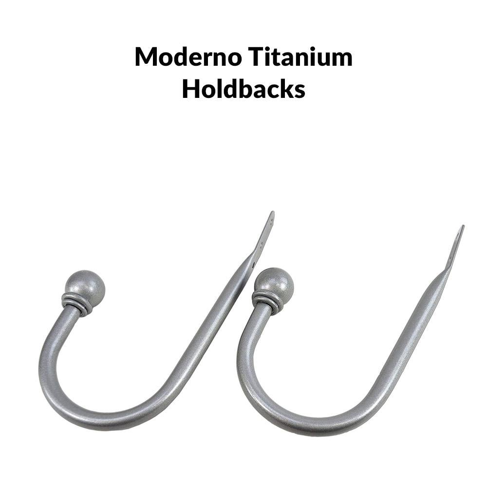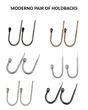 Looking to elegantly hold back your curtains during the day? Well with the Moderno Pair of Holdbacks by Versailles Home Fashions you can get the exact look you want! These clip rings and holdbacks come in a variety of colors to match your decor perfectly! Find the perfect match for your rod and window today!Features