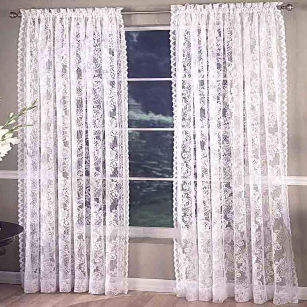 Monaco is a pair of elegant lace panels by Lorraine Home Fashions with scalloped sides and 4” bottom hems, with 1” header. Monaco is a super wide 120" inches pair, each panel measuring 60" inches, an exceptional value! Monaco is available in two colors with an all over rose victorian lace design throughout the curtain. The 1 1/2" rod pockets works well on both a conventional or decorative rod.