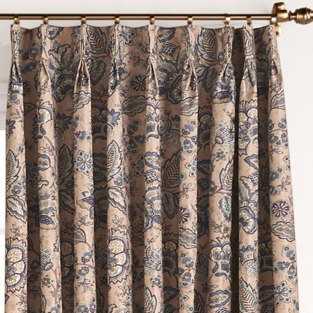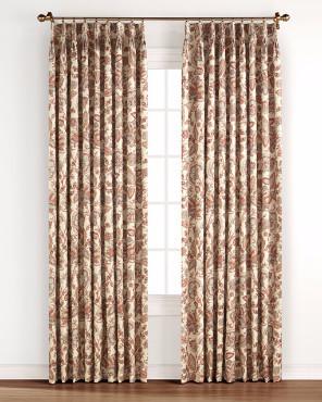 The paisley design blends in any existing décor, while still giving your space a refreshed look. Monique foam back pinch pleated pair in the coral color has shades of aqua, rust, taupe, brown, warm gold, and beige. Monique panel pair in taupe has shades of ivory, aqua, navy, taupe, blue, and grey. Monique in ivory has shades of aqua, blue, taupe, brown, ivory and beige.