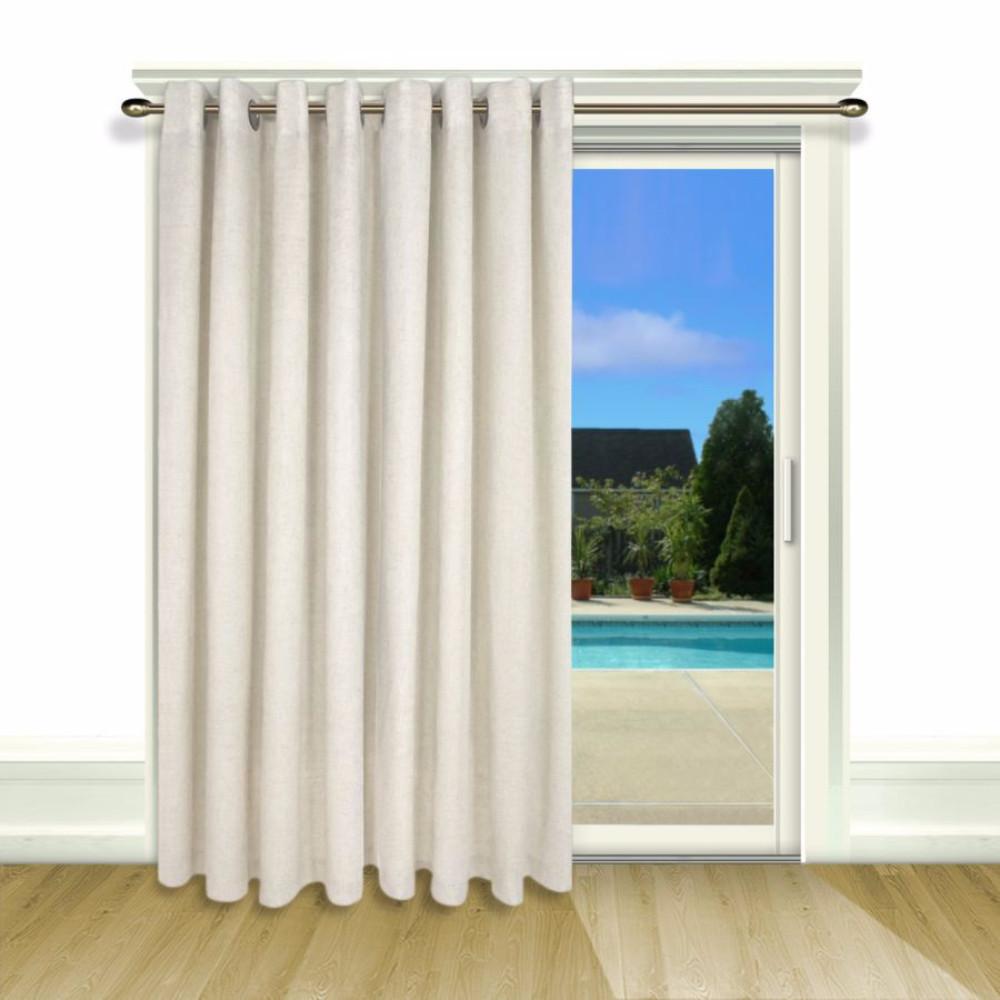 Enjoy a sophisticated style in your home with the New Castle lined patio panel. This lovely solid print panel adds elegance to any room. In 4 beautiful colors, the White and Toffee panels come with a white lining while the Natural and Grey panels come with an ivory lining. Not only do they differ in lining but also with the grommets; a bronze grommet top is featured on the Natural and Toffee panels and a brushed nickel grommet is featured on the White and Grey panels. This patio panel comes with a wand to ease the sliding process.