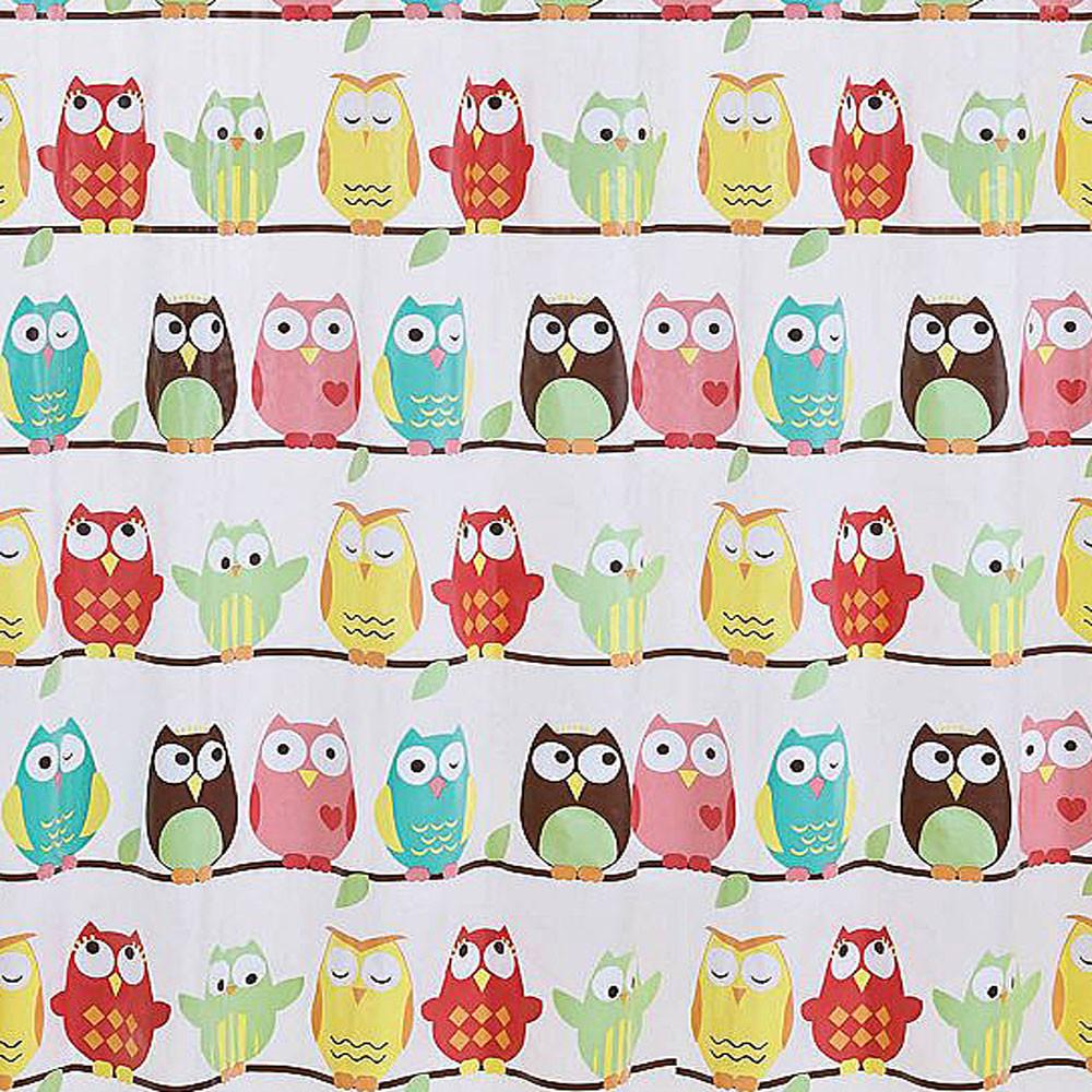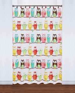 The Owl Peva shower curtain by Saturday Knight will be a Hoot in any bathroom! Owl shower curtain features colorful whimsical owls perched on branches over a frosted backdrop. Matching Shower Hook as available
