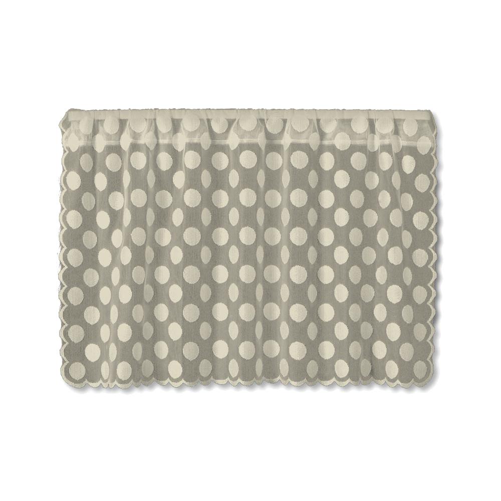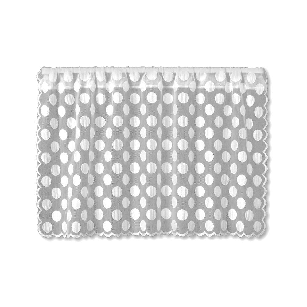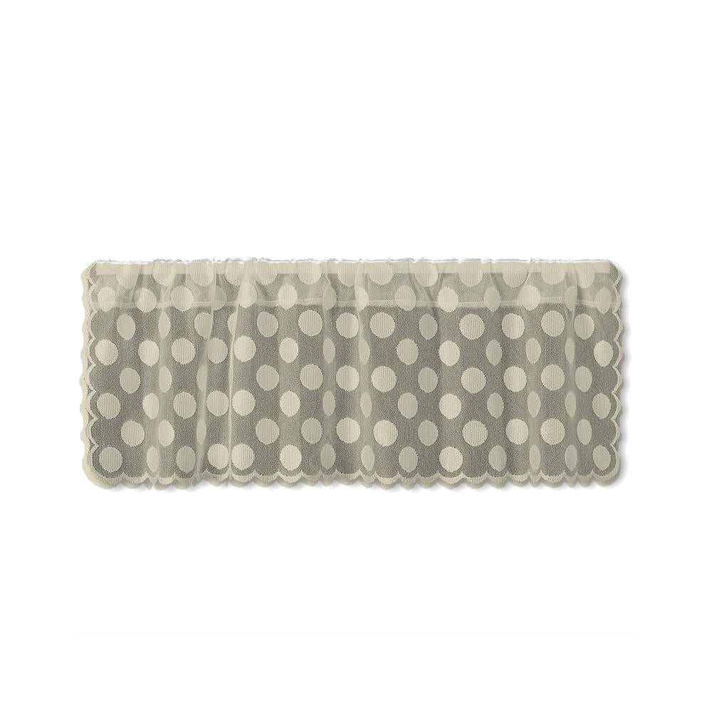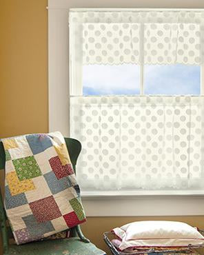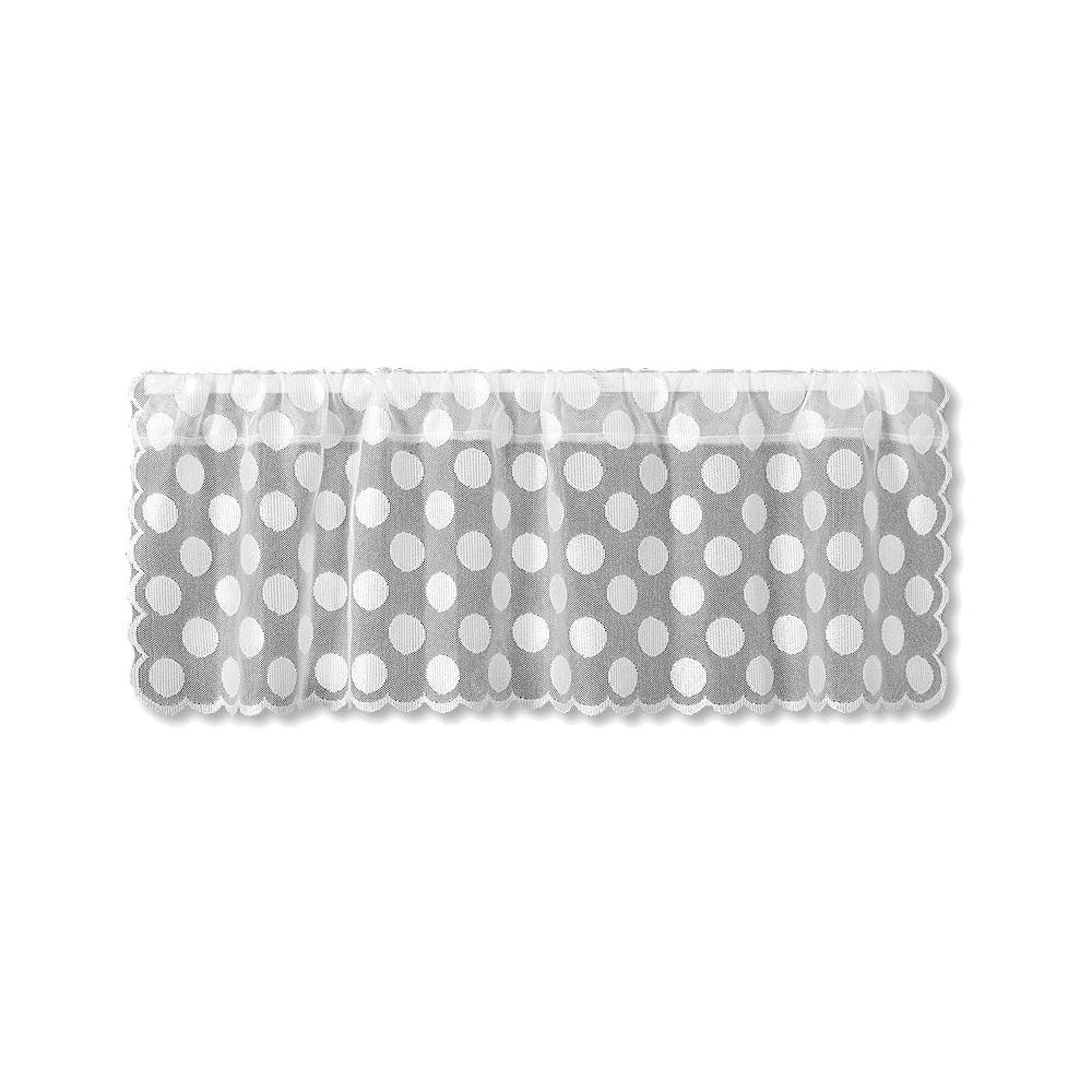 Combine the gentle light filtering softness of sheer netting with over-sized polka dots and you have a fun, go-anywhere valance for your windows. Delicate scallop detailing frames each curtain. Made in the U.S.A.