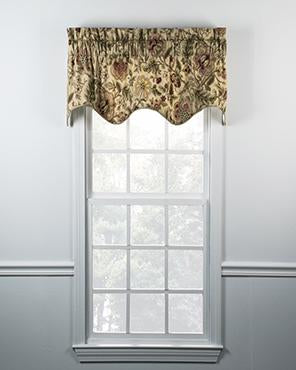 Improve the look of your home's decor with the Regency Floral Duchess Filler Valance by Ellis. The lined, cotton window valance features a solid ground with beautiful Jacobean floral patterns and scalloped edges with twist cording.