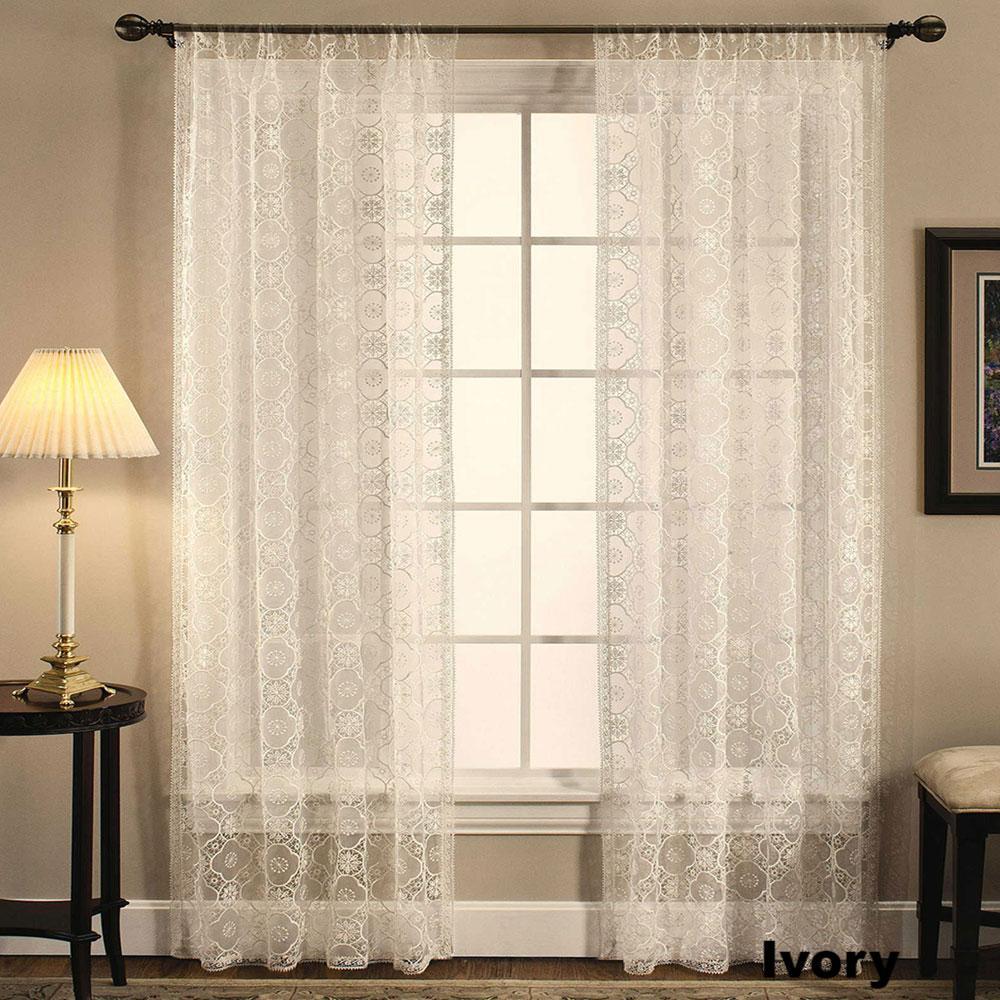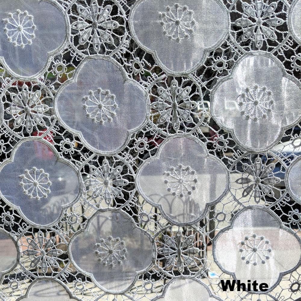 Welcome in the sunshine by hanging this beautiful macramé tailored rod pocket panel featuring a classic daisy / snowflake radial design in your home. The delicate macramé lace is made from a polyester organza, adding shimmer to this old world meets modern era macramé design. Available in 2 two sizes: 41” in Wide x 63"in Long and 41"in Wide x 84" in Long.