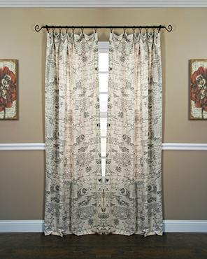 Add a subtle touch of contemporary elegance to any room in your home with this natural ground crushed taffeta script panel. The beige background on this panel is reminiscent of a parchment on which the gorgeous script pattern comes to life making the panel a standout addition to any space. The neutral color on this grommet curtain panel easily blends with a variety of color schemes. Also available, is the coordinating script tailored valance (sold separately).