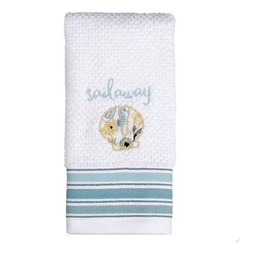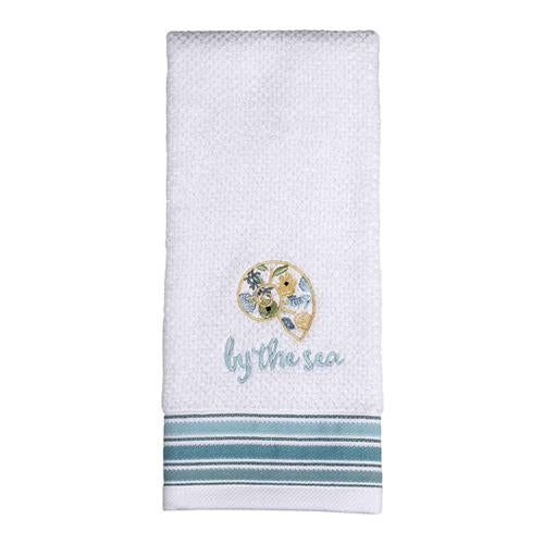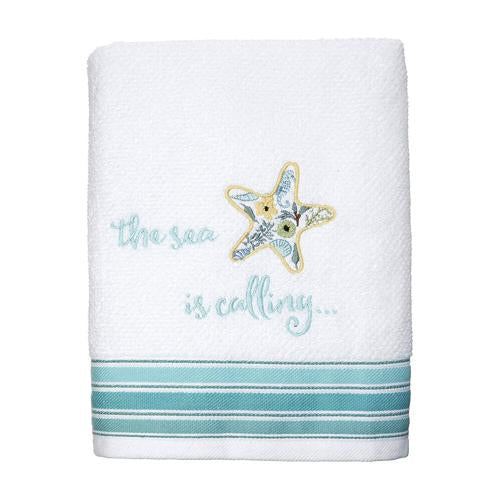 The sea is calling with the Seaside Blossoms Shower Curtain and Towels. Soft and absorbent, this towel features a textured weave, a sea-inspired motif with embroidery and striped trim in calming sea glass hues. It's perfect to use alone in a powder room or with the rest of the coordinating towels in your main bath. Pair with matching Seaside Blossoms accessories to complete the look.