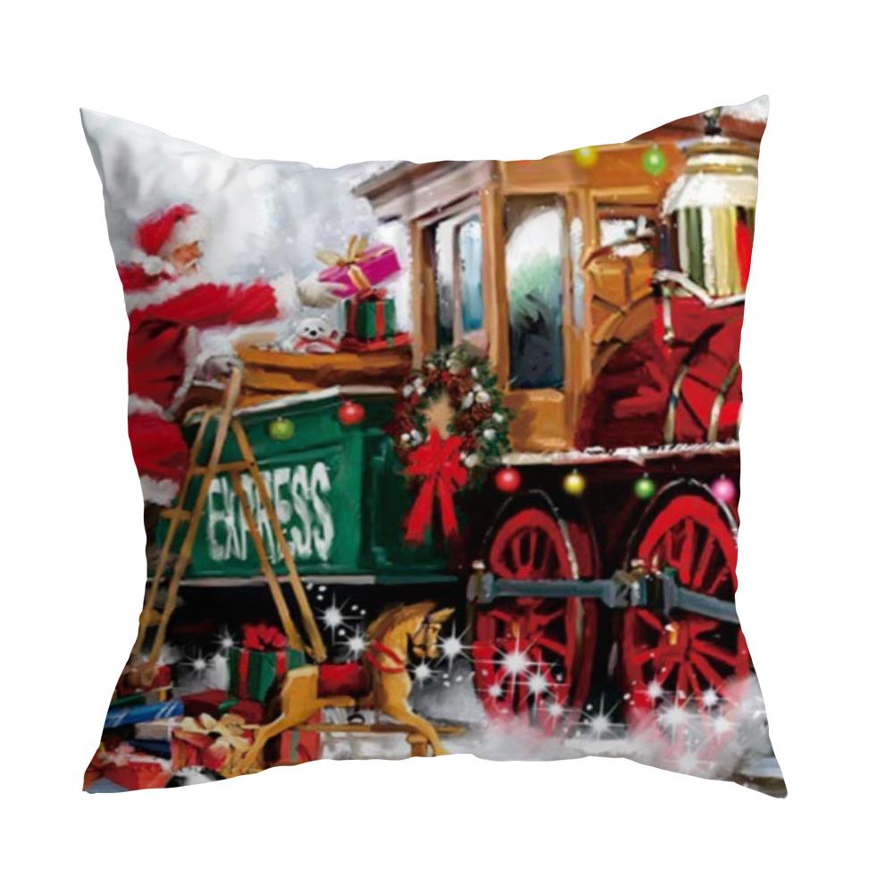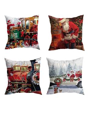 Bring Santa Clause to your couch just in time for the holidays! The Seasonal Action Cushion Covers by Violet Linen show Santa in a variety of holiday themed situation! Whether he's by the fireplace, driving a Christmas themed car, next to a bright train or loading presents onto a train he will make it feel like the holidays wherever you put him!