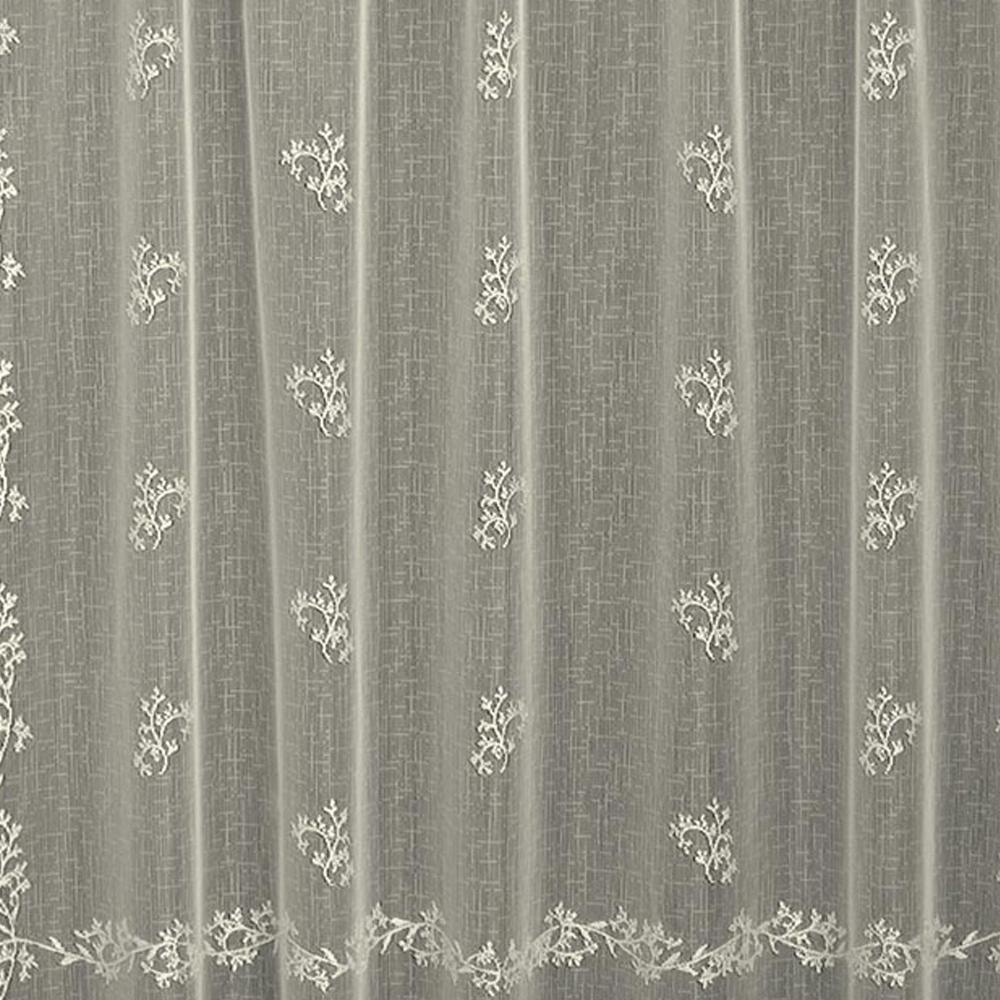 The delicate Sheer Divine panel lends a light and airy look to any window. Crafted from the finest clipped lace, this divine sheer features a delicate floral and vine pattern atop a linen like netting. These lightweight sheer curtains are finished with scalloped edges on three sides.