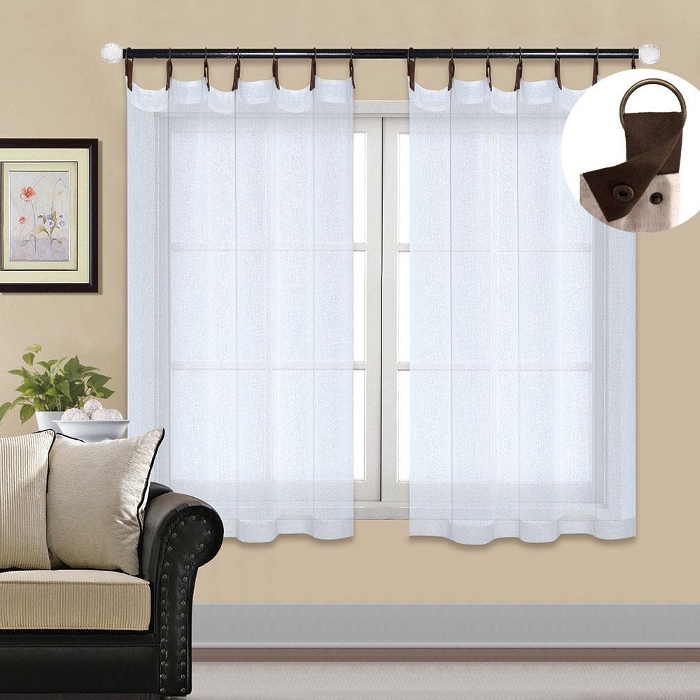 Difficult to find 45” and 54” long grommet curtain panels for hard to decorate window all over your home. Sherbrooke's simulated leather snap grommets add casual sophisticated style to the supple heathered texture of the semi sheer panel. The sturdy grommets are easy to attach, snaps securely to the curtain panel and are included in the package. These grommets add a finishing touch, create crisp clean lines and are easy to pull open and closed. Sherbrooke is perfect for bedrooms, family rooms, living room and is a welcome addition to any décor. The grommet has an opening of 1.5 inches in diameter and uses a curtain rod up to 1.25 inches in diameter. The panel is made of durable machine washable polyester.