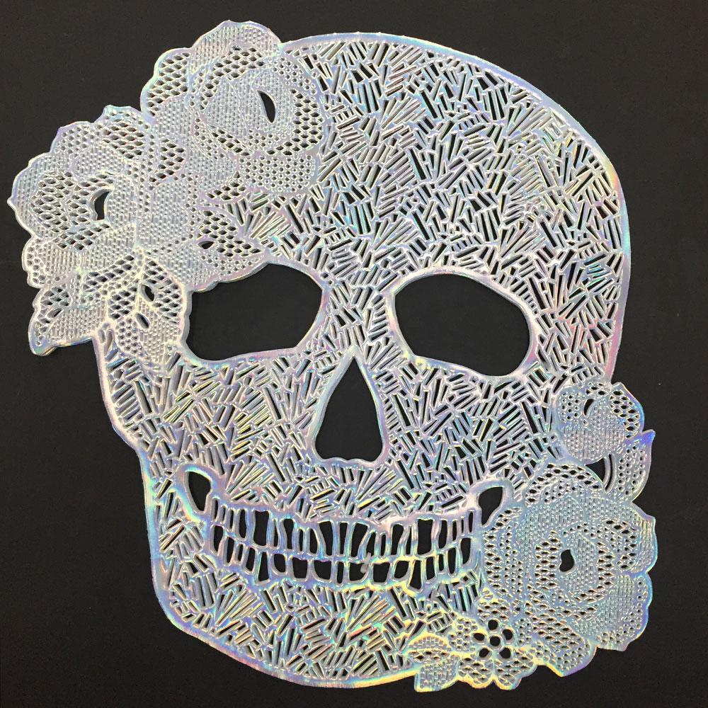 Great for Halloween or El Dia de Los Muertos (Day of The Dead), these Skull & Roses Iridescent Vinyl Placemats. With a lace like cutout and shimmery detail, your table will look great from any angle.