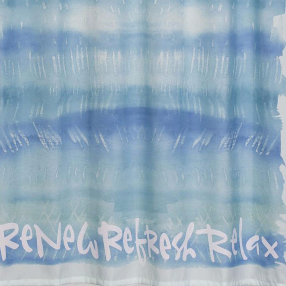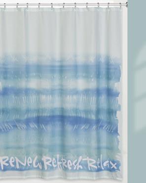 A water color effect in a variation of blues with an inspirational message gives ant bathroom an uplift.